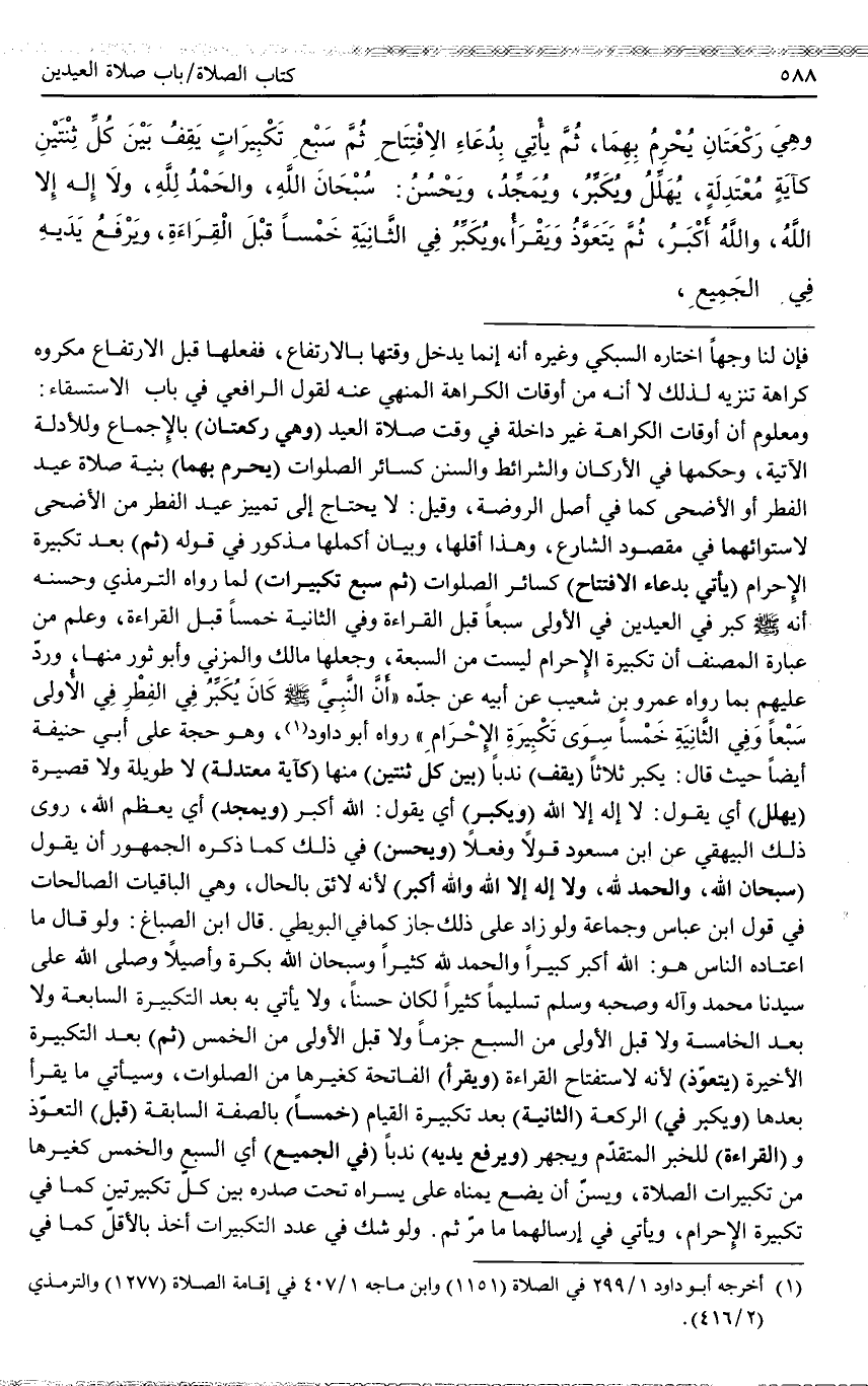 وَهِيَ رَكْعَتَانِ يُحْرِمُ بِهِمَا، ثُمَّ يَأْتِي بِدُعَاءِ الِافْتِتَاحِ ثُمَّ سَبْعِ تَكْبِيرَاتٍ يَقِفُ بَيْنَ كُلِّ ثِنْتَيْنِ كَآيَةٍ مُعْتَدِلَةٍ، يُهَلِّلُ وَيُكَبِّرُ، وَيُمَجِّدُ، وَيَحْسُنُ: سُبْحَانَ اللَّهِ، وَالْحَمْدُ لِلَّهِ، وَلَا إلَهُ إلَّا اللَّهُ، وَاَللَّهُ أَكْبَرُ، ثُمَّ يَتَعَوَّذُ وَيَقْرَأُ، وَيُكَبِّرُ فِي الثَّانِيَةِ خَمْسًا قَبْلَ الْقِرَاءَةِ، وَيَرْفَعُ يَدَيْهِ فِي الْجَمِيعِ،