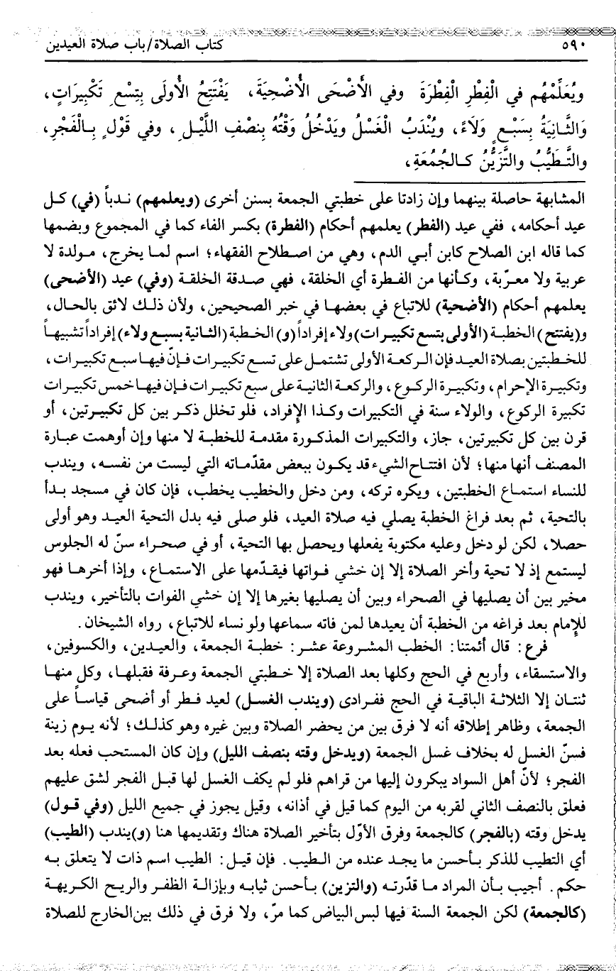 (وَالتَّزَيُّنُ) بِأَحْسَنِ ثِيَابِهِ وَبِإِزَالَةِ الظُّفُرِ وَالرِّيحِ الْكَرِيهَةِ (كَالْجُمُعَةِ) لَكِنَّ الْجُمُعَةَ السُّنَّةُ فِيهَا لُبْسُ الْبَيَاضِ كَمَا مَرَّ، وَلَا فَرْقَ فِي ذَلِكَ بَيْنَ الْخَارِجِ لِلصَّلَاةِ