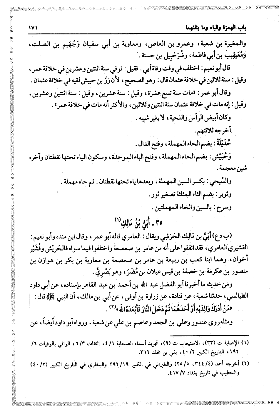 ب د ع: أَبِي بْن مالك الحرشي ويقال: العامري قاله أَبُو عمر.