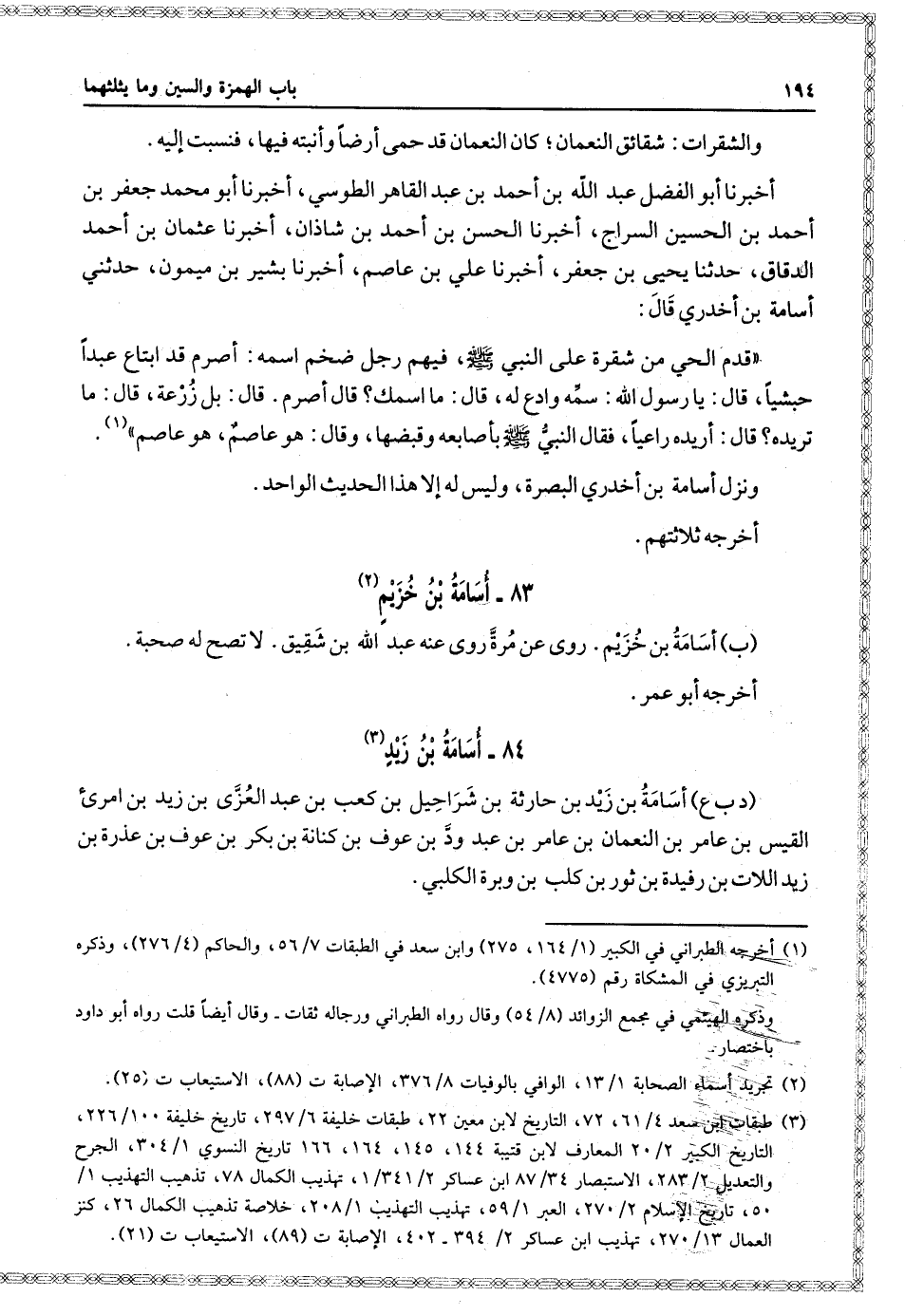 ب: أسامة بْن خزيم روى عن مرة، روى عنه عَبْد اللَّهِ بْن شقيق، لا تصح له صحبة.