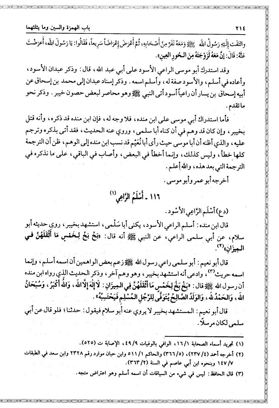 د ع: أسلم الراعي الأسود قال ابن منده: أسلم الراعي الأسود يكنى أبا سلمى، استشهد بخيبر.