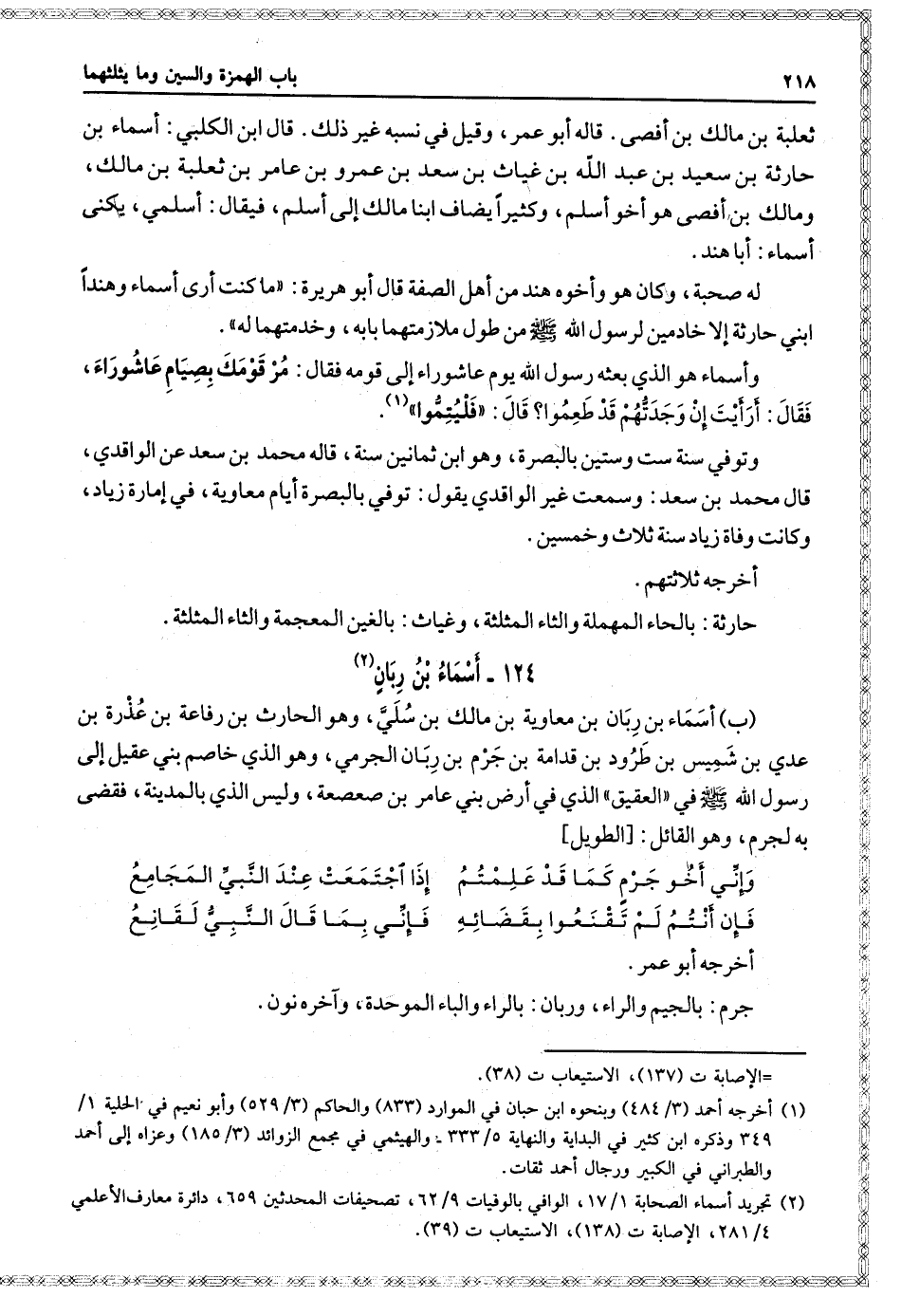 ب: أسماء بْن ربان بْن معاوية بْن مالك بْن سلي وهو الحارث بْن رفاعة بْن عذرة بْن عدي بْن شميس بْن طرود بْن قدامة بْن جرم بْن ربان الجرمي.