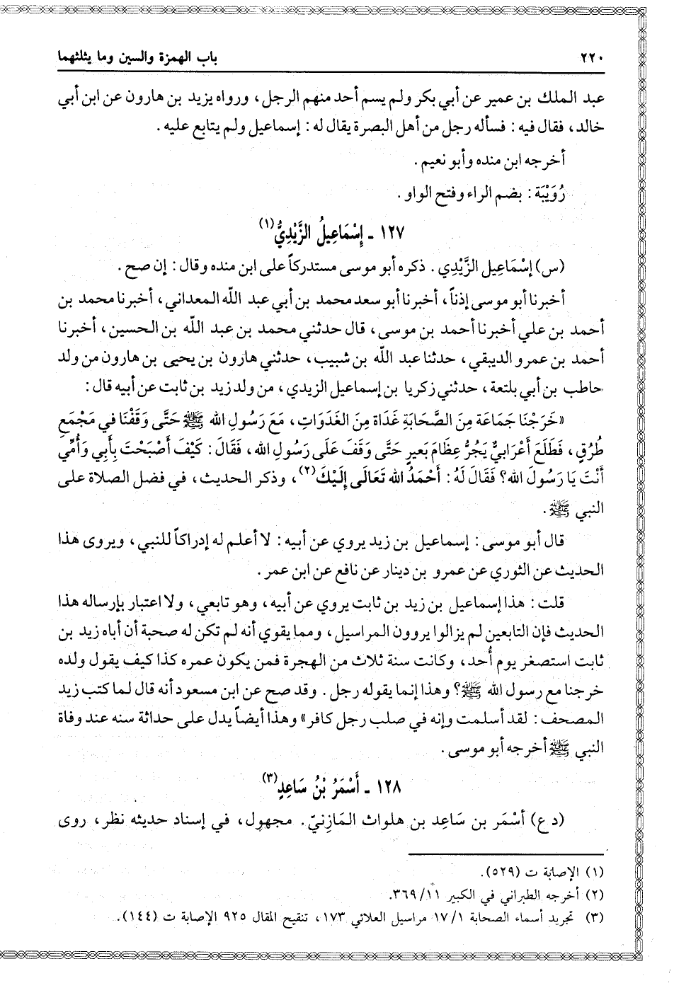 س: إِسْمَاعِيل الزيدي ذكره أَبُو موسى مستدركًا عَلَى ابن منده، وقال: إن صح.