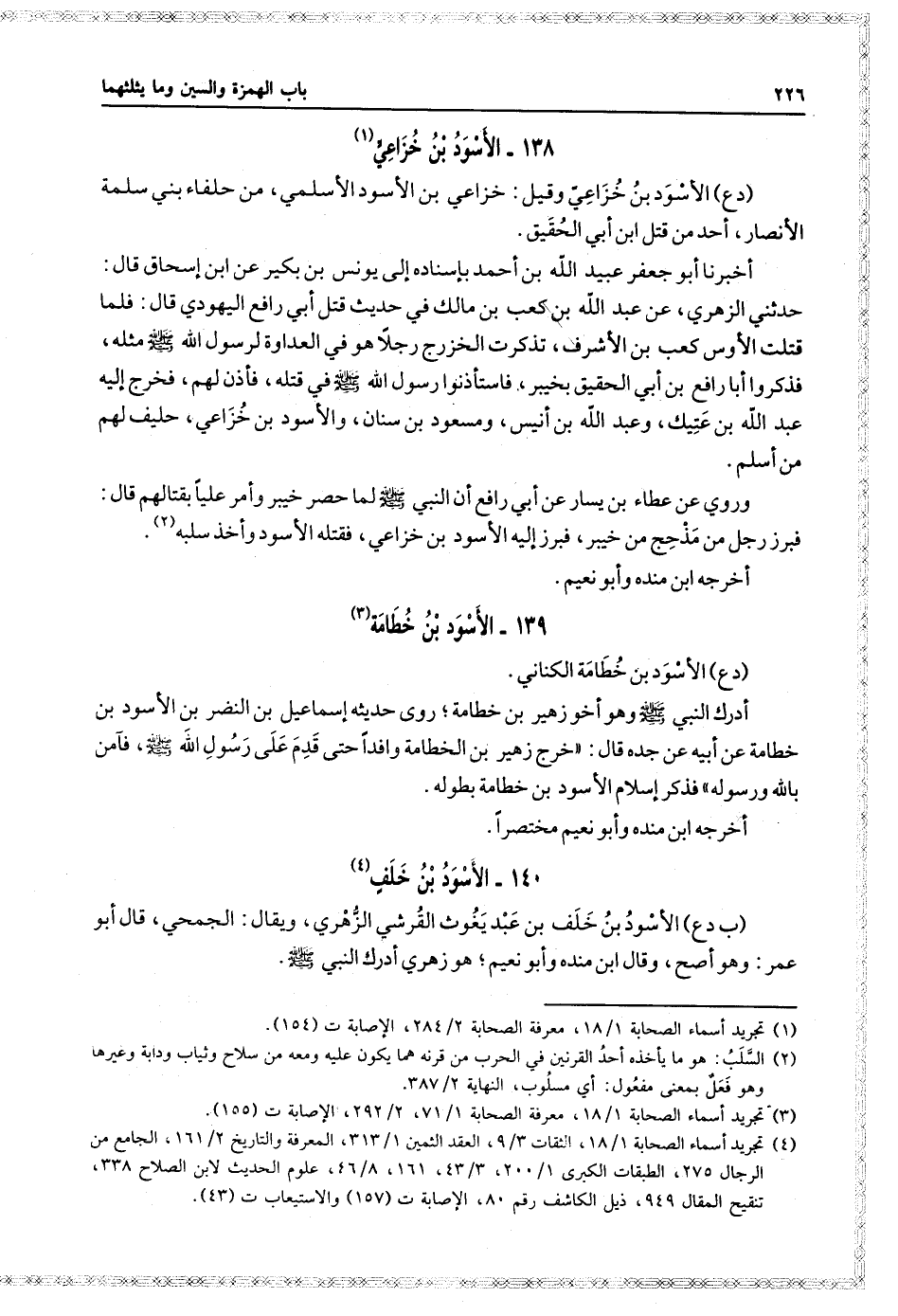 وفيه أيضًا نظر، فإن عبد مناف بْن زهرة ولد وهبًا، وولد وهب عبد يغوث، وولد عبد يغوث الأسود، وكان من المستهزئين ولم يسلم، وَإِنما الأسود الصحابي في زهرة هو الأسود بْن عوف، وسيرد ذكره، وليس في نسبه خلف، ولا عبد يغوث، ولكنهم قد اتفقوا عَلَى نسبه إِلَى خلف، ولعل فيه ما لم نره.
