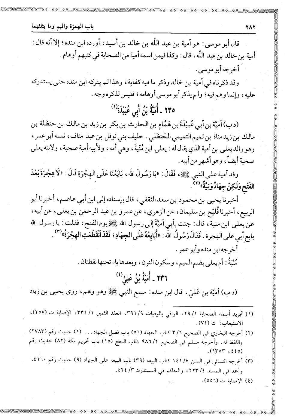 أَخْرَجُه ابْنُ مَنْدَهْ، وَأَبُو عُمَرَ. منية، أم يعلى بضم الميم، وسكون النون، وبعدها ياء تحتها نقطتان.