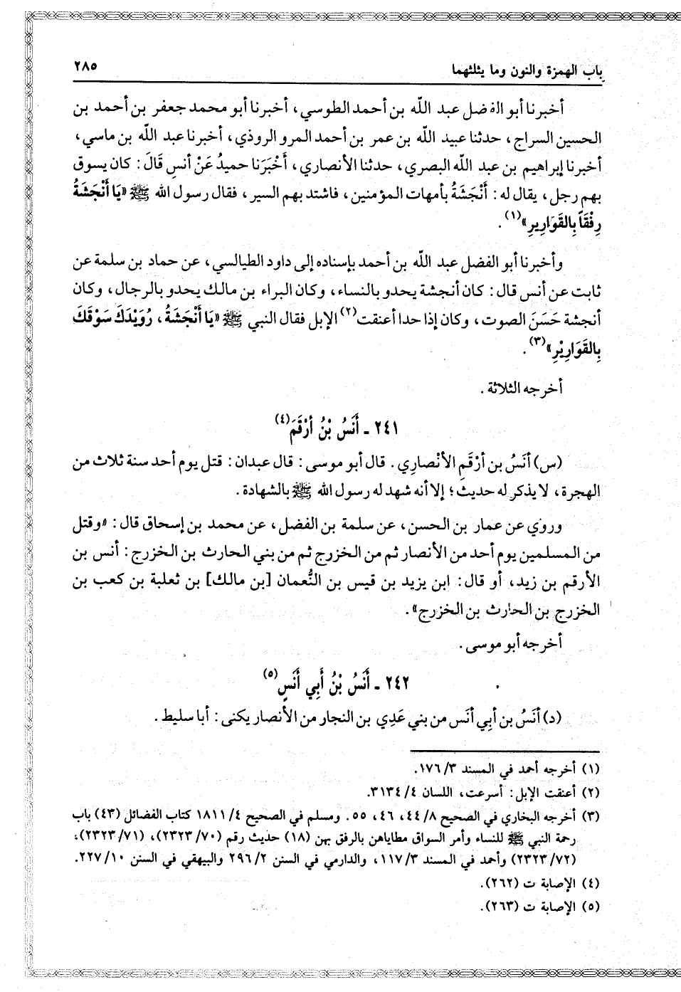 (٨٦) أخبرنا أَبُو جَعْفَر عُبَيْد اللَّهِ بْن أحمد بْن عَلِيٍّ، بِإِسْنَادِهِ عن يونس بْن بكير، عن مُحَمَّدِ بْنِ إِسْحَاق، قال في تسمية من شهد بدرًا من الأنصار، ومن بني عدي بْن النجار: أَبُو سليط، واسمه أنس، ورواه سلمة بْن الفضل، عن مُحَمَّدِ بْنِ إِسْحَاق فيمن شهد بدرًا من الأنصار..