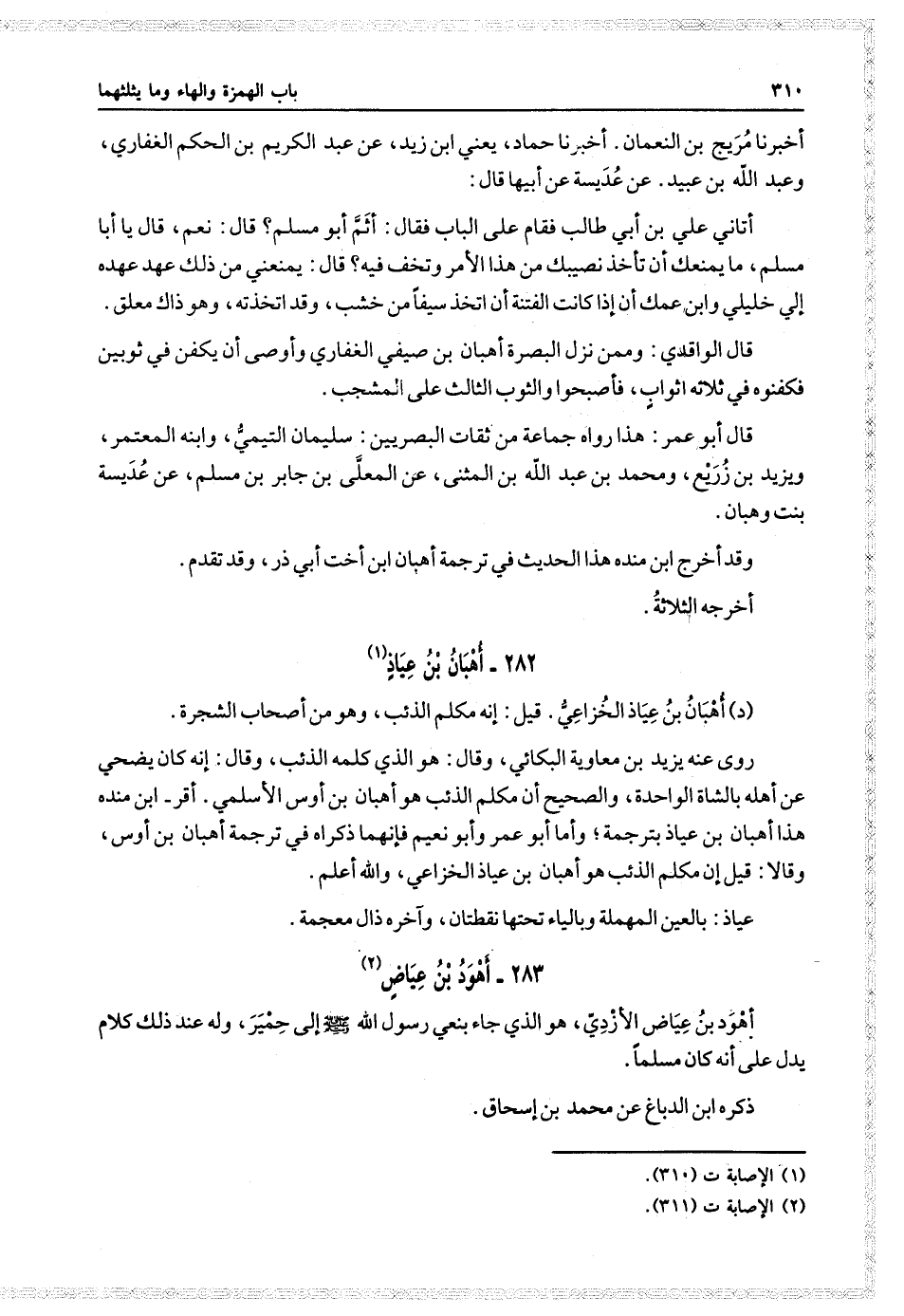 د: أهبان بْن عياذ الخزاعي قيل: إنه مكلم الذئب، وهو من أصحاب الشجرة.