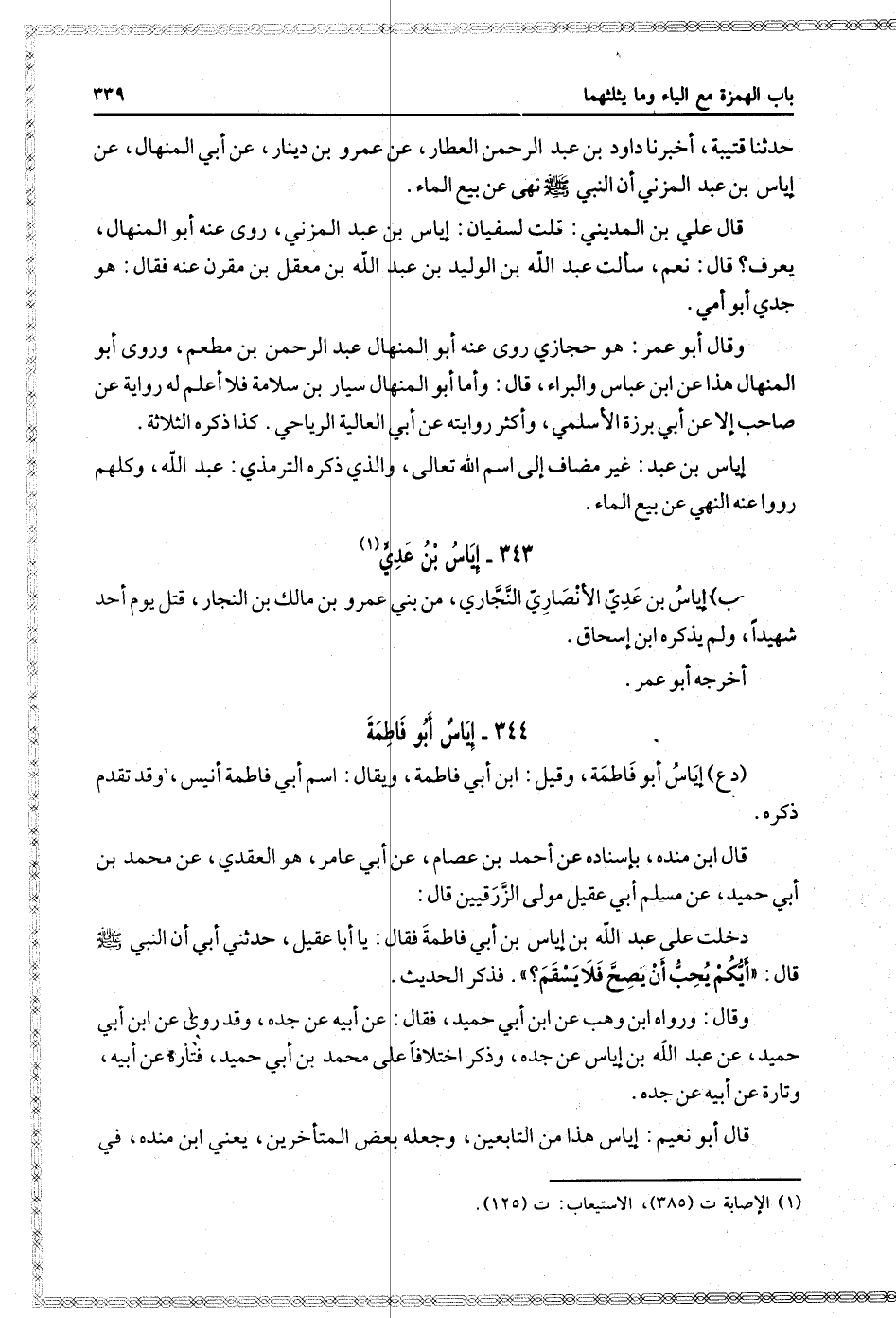 ب: إياس بْن عدي الأنصاري النجاري من بني عمرو بْن مالك بْن النجار، قتل يَوْم أحد شهيدًا، ولم يذكره ابن إِسْحَاق.