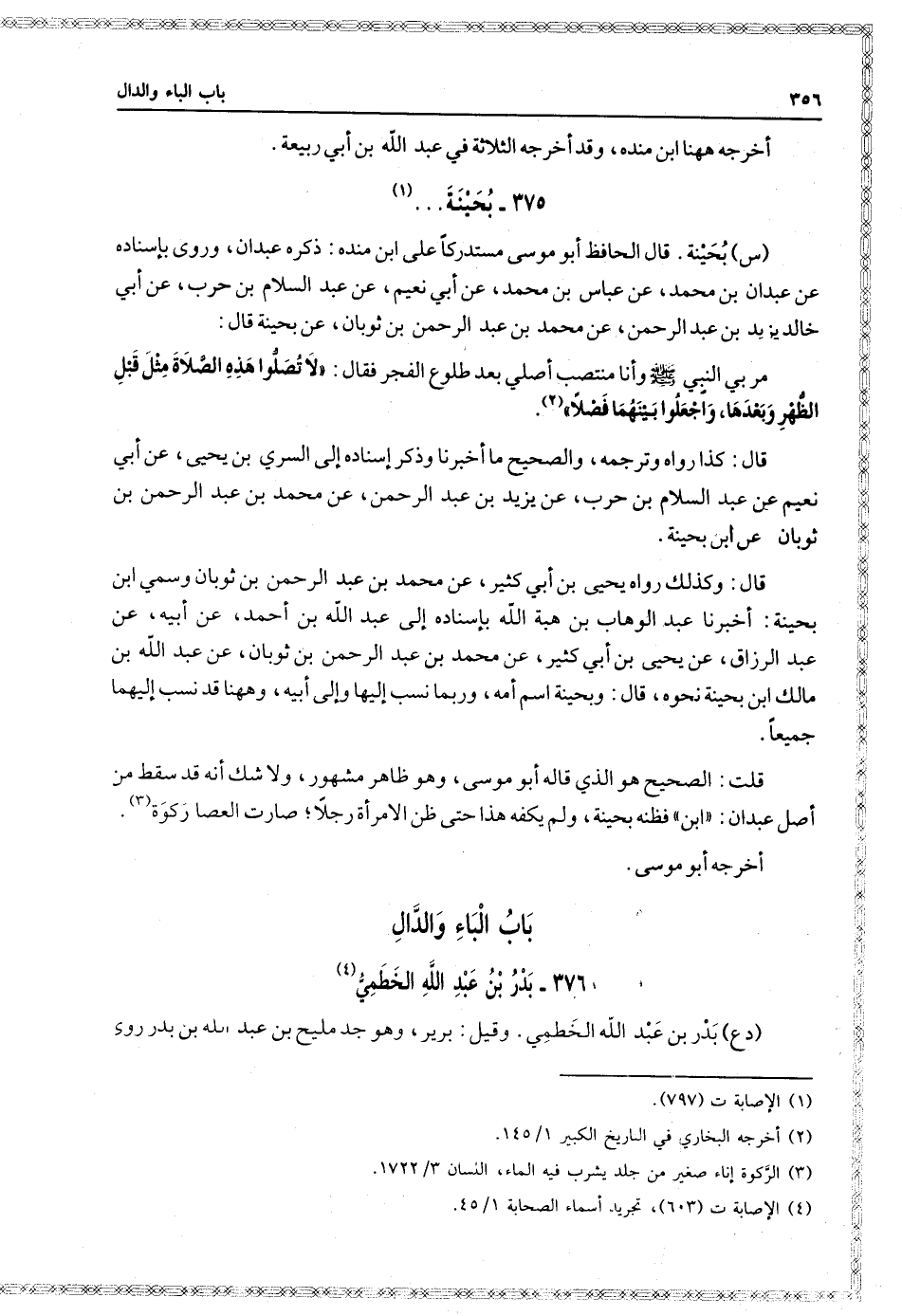 س: بحينة قال الحافظ أَبُو موسى مستدركًا عَلَى ابن منده: ذكره عبدان.
