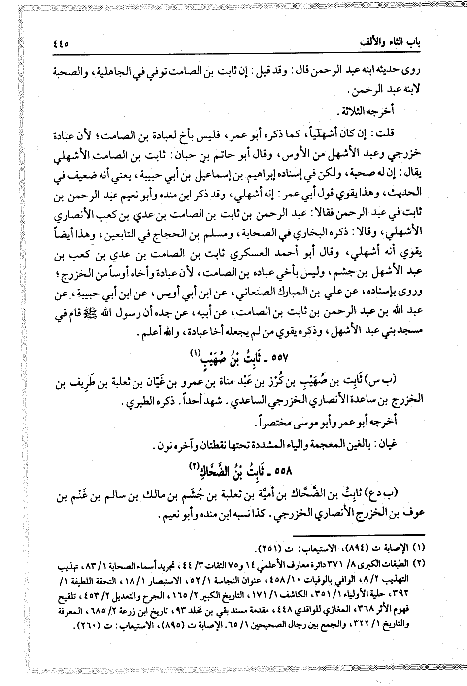 ب س: ثابت بْن صهيب بْن كرز بْن عبد مناة بْن عمرو بْن غيان بْن ثعلبة بْن طريف بْن الخزرج بْن ساعدة الأنصاري الخزرجي الساعدي شهد أحدًا، ذكره الطبري.