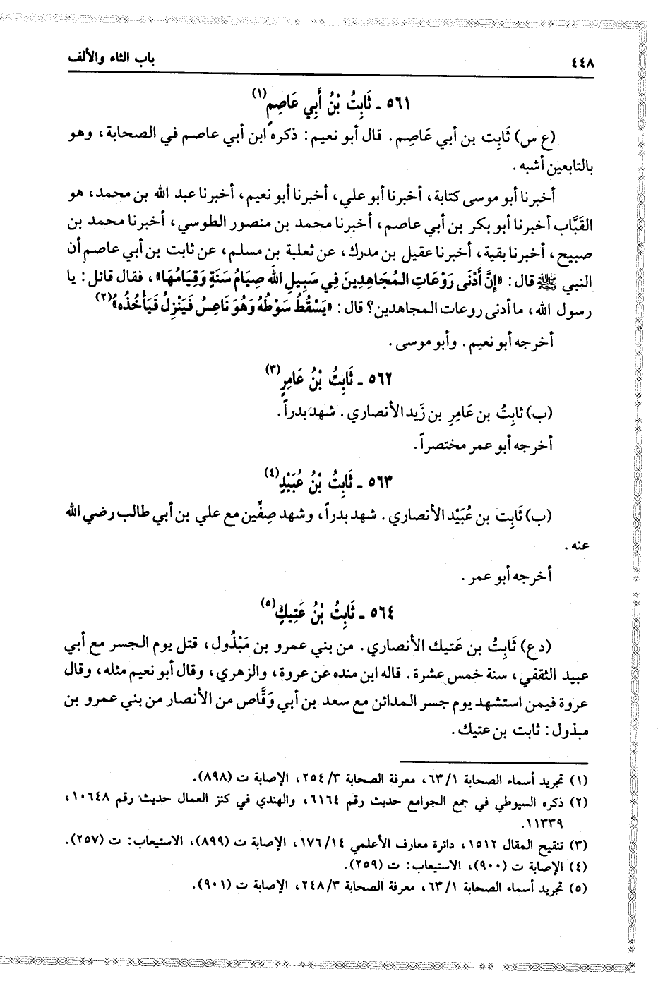 ب: ثابت بْن عبيد الأنصاري شهد بدرًا، وشهد صفين مع علي بْن أَبِي طالب رضي اللَّه عنه.