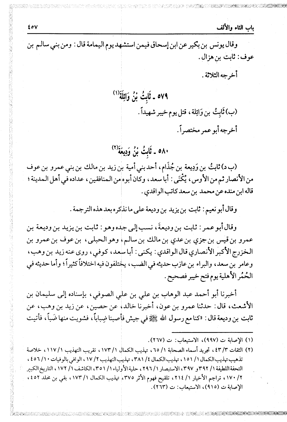 ب: ثابت بْن وائلة قتل يَوْم خيبر شهيدًا.