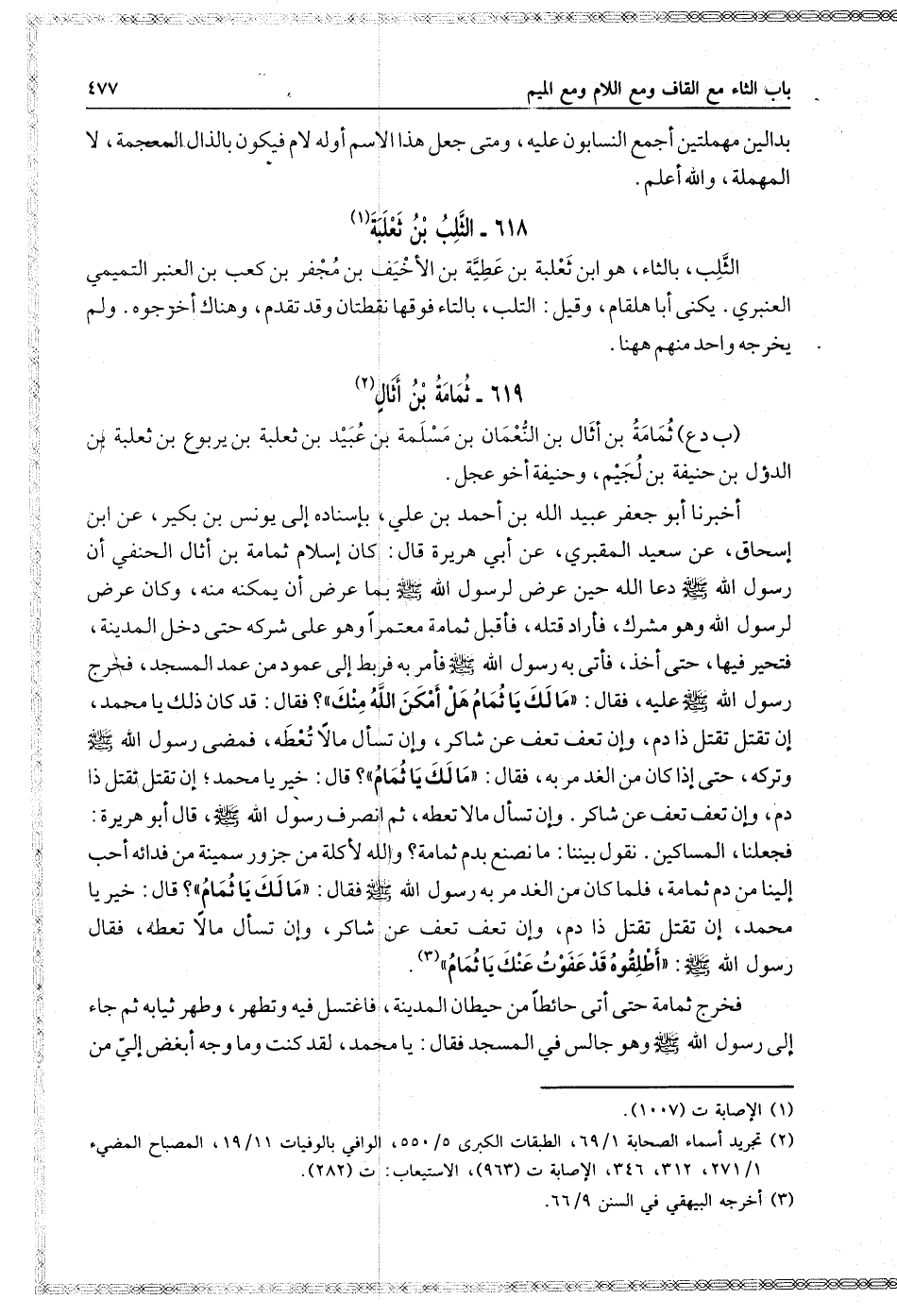 ب د ع: ثمامة بْن أثال بْن النعمان بْن مسلمة بْن عبيد بْن ثعلبة بْن يربوع بْن ثعلبة بْن الدؤل بْن حنيفة بْن لجيم وحنيفة أخو عجل.