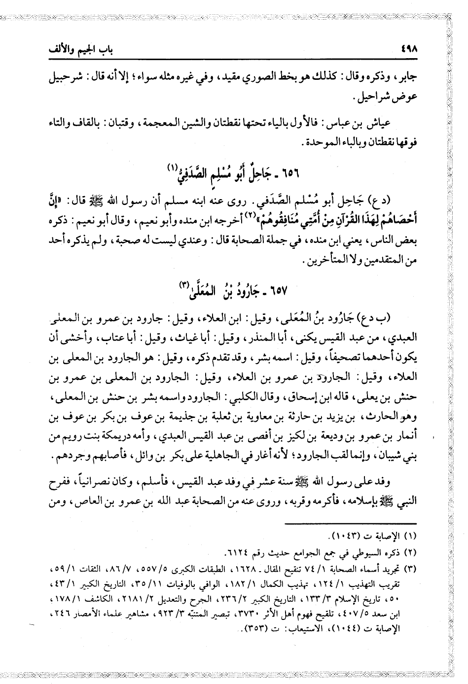 ب د ع: جارود بْن المعلى وقيل: ابن العلاء، وقيل: جارود بْن عمرو بْن المعلى العبدي، من عبد القيس، يكنى: أبا المنذر، وقيل: أبا غياث، وقيل: أبا عتاب، وأخشى أن يكون أحدهما تصحيفًا، وقيل: اسمه بشر.