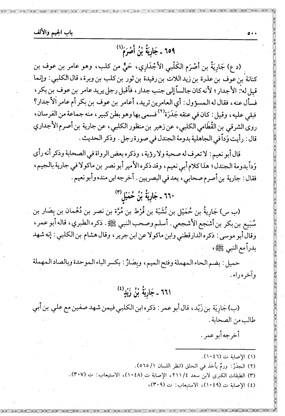 د ع: جارية بْن أصرم الكلبي الأجداري حي من كلب وهو عامر بْن عوف بْن كنانة بْن عوف بْن عذرة بْن زيد اللات بْن رفيدة بْن ثور بْن كلب بْن وبرة.