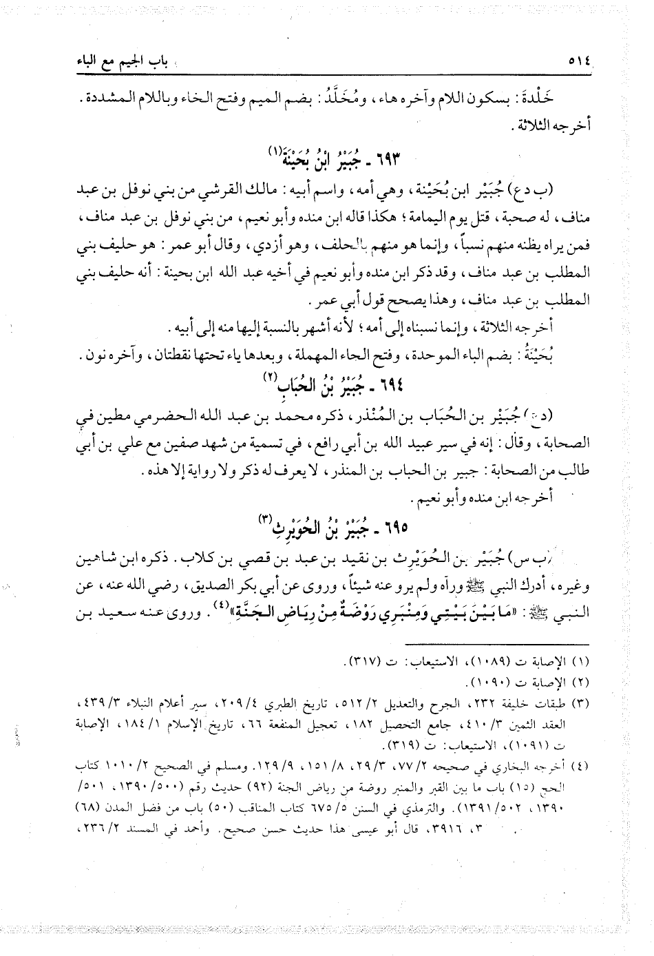 ب د ع: جبير بْن بحينة وهي أمه، واسم أبيه: مالك القرشي من بني نوفل بْن عبد مناف.