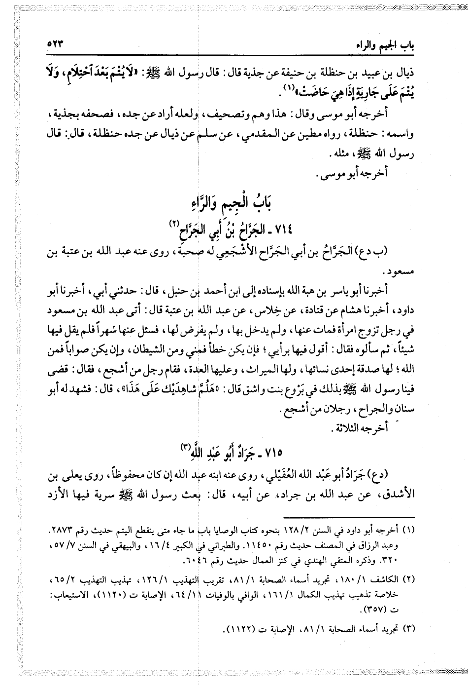 ب د ع: الجراح بْن أَبِي الجراح الأشجعي له صحبة، روى عنه عَبْد اللَّهِ بْن عتبة بْن مسعود.