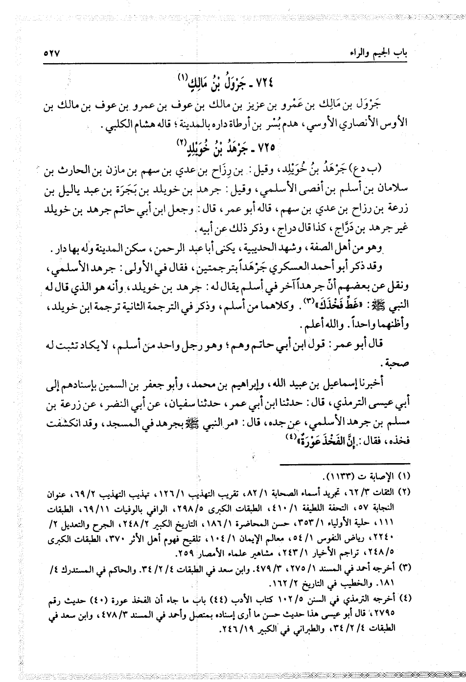 وقيل: جرهد بْن خويلد بْن بجرة بْن عبد ياليل بْن زرعة بْن رواح بْن عدي بْن سهم، قاله أَبُو عمر، قال: وجعل ابن أَبِي حاتم جرهد بْن خويلد غير جرهد بْن دراج، كذا قال دراج، وذكر ذلك عن أبيه.