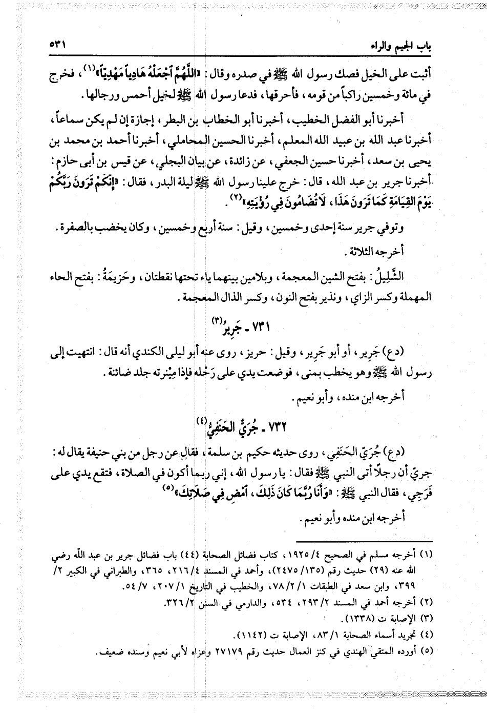 د ع: جري الحنفي روى حديثه حكيم بْن سلمة، فقال عن رجل من بني حنيفة، يقال له: جري، أن رجلا أتى النَّبِيّ صَلَّى اللَّهُ عَلَيْهِ وَسَلَّمَ فقال: يا رَسُول اللَّهِ، إني ربما أكون في الصلاة، فتقع يدي عَلَى فرجي، فقال النَّبِيّ صَلَّى اللَّهُ عَلَيْهِ وَسَلَّمَ: وأنا ربما كان ذلك، امض في صلاتك.
