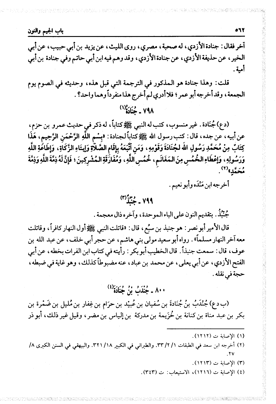 له ذكر في حديث عمرو بْن حزم، عن أبيه، عن جده، قال: كتب رَسُول اللَّهِ صَلَّى اللَّهُ عَلَيْهِ وَسَلَّمَ كتابًا لجنادة: بسم اللَّه الرحمن الرحيم، هذا كتاب من مُحَمَّد رَسُول اللَّهِ لجنادة وقومه، ومن اتبعه بإقام الصلاة، وَإِيتاء الزكاة، أطاع اللَّه ورسوله، وأعطى الخمس من المغانم، خمس اللَّه، وفارق المشركين، فإن له ذمة اللَّه، وذمة مُحَمَّد.