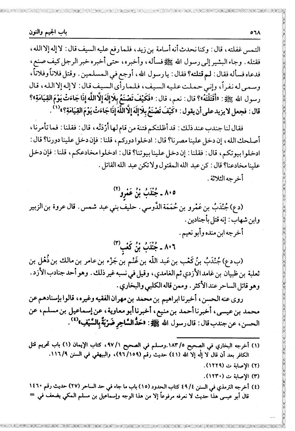 ب د ع: جندب بْن كعب بْن عَبْد اللَّهِ بْن غنم بْن جزء بْن عامر بْن مالك بْن ذهل بْن ثعلبة بْن ظبيان بْن غامد الأزدي ثم الغامدي وقيل في نسبه غير ذلك، وهو أحد جنادب الأزد، وهو قاتل الساحر عند الأكثر، وممن قاله الكلبي والبخاري.