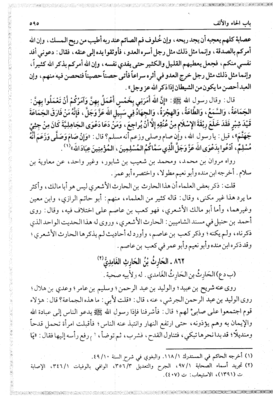 ب د ع: الحارث بْن الحارث الغامدي له ولأبيه صحبة.