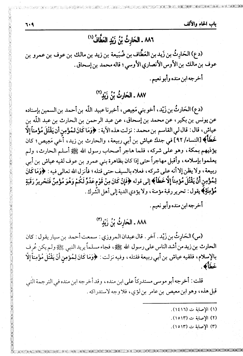 قال عبدان المروزي: سمعت أحمد بْن سيار، يقول: كان الحارث بْن زيد من أشد الناس عَلَى رَسُول اللَّهِ صَلَّى اللَّهُ عَلَيْهِ وَسَلَّمَ فجاء مسلمًا يريد النَّبِيّ صَلَّى اللَّهُ عَلَيْهِ وَسَلَّمَ ولم يكن عرف بالإسلام، فلقيه عياش بْن أَبِي ربيعة فقتله، وفيه نزلت: {وَمَا كَانَ لِمُؤْمِنٍ أَنْ يَقْتُلَ مُؤْمِنًا إِلا خَطَأً} .