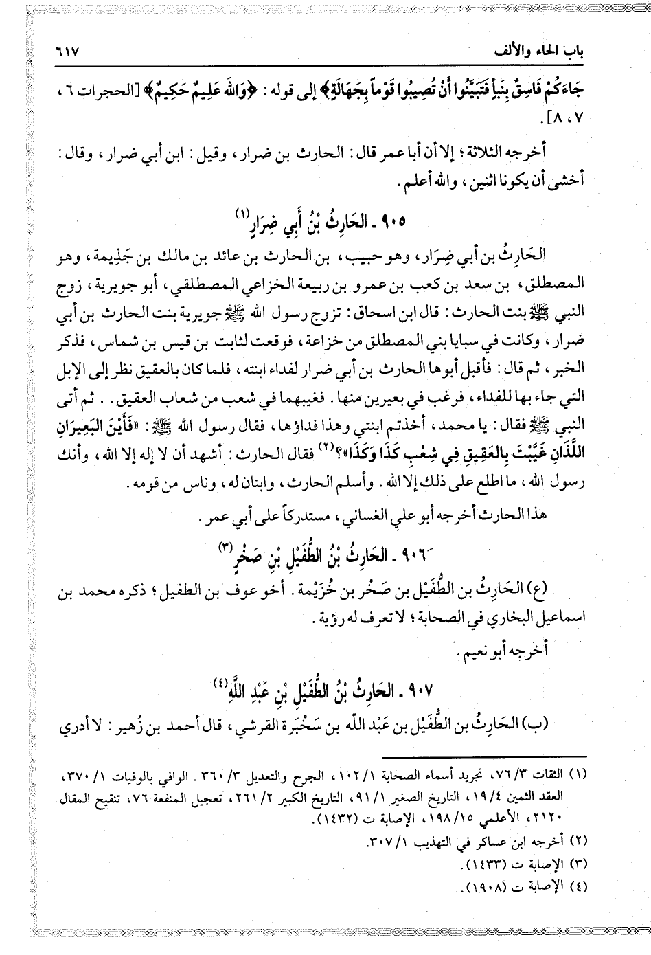 ٩٠٧- الحارث بن الطفيل بن عبد الله