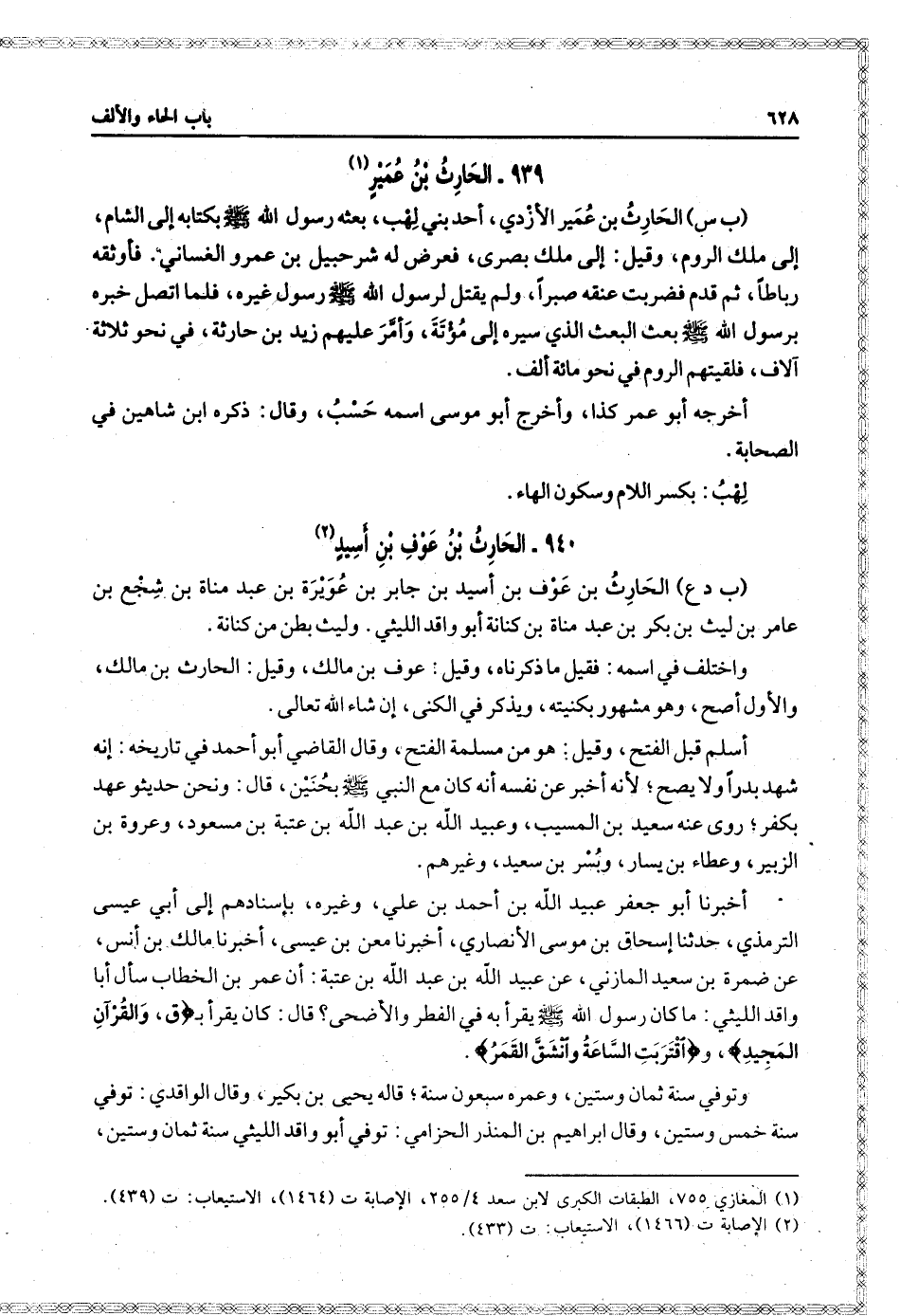 ب د ع: الحارث بْن عوف بْن أسيد بْن جابر بْن عويرة بْن عبد مناة بْن شجع بْن عامر بْن ليث بْن بكر بْن عبد مناة بْن كنانة أَبُو واقد الليثي، وليث بطن من كنانة.