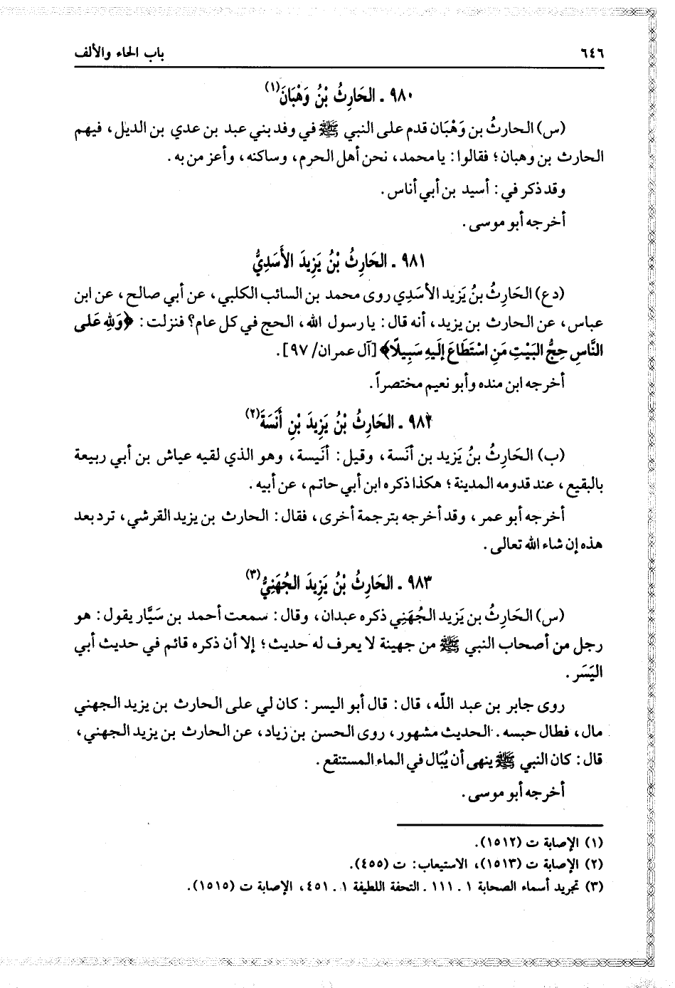 د ع: الحارث بْن يَزِيدَ الأسدي روى مُحَمَّد بْن السائب الكلبي، عن أَبِي صالح، عن ابن عباس، عن الحارث بْن يَزِيدَ، أَنَّهُ قال: يا رَسُول اللَّهِ، الحج في كل عام؟ فنزلت: {وَلِلَّهِ عَلَى النَّاسِ حِجُّ الْبَيْتِ مَنِ اسْتَطَاعَ إِلَيْهِ سَبِيلا} .