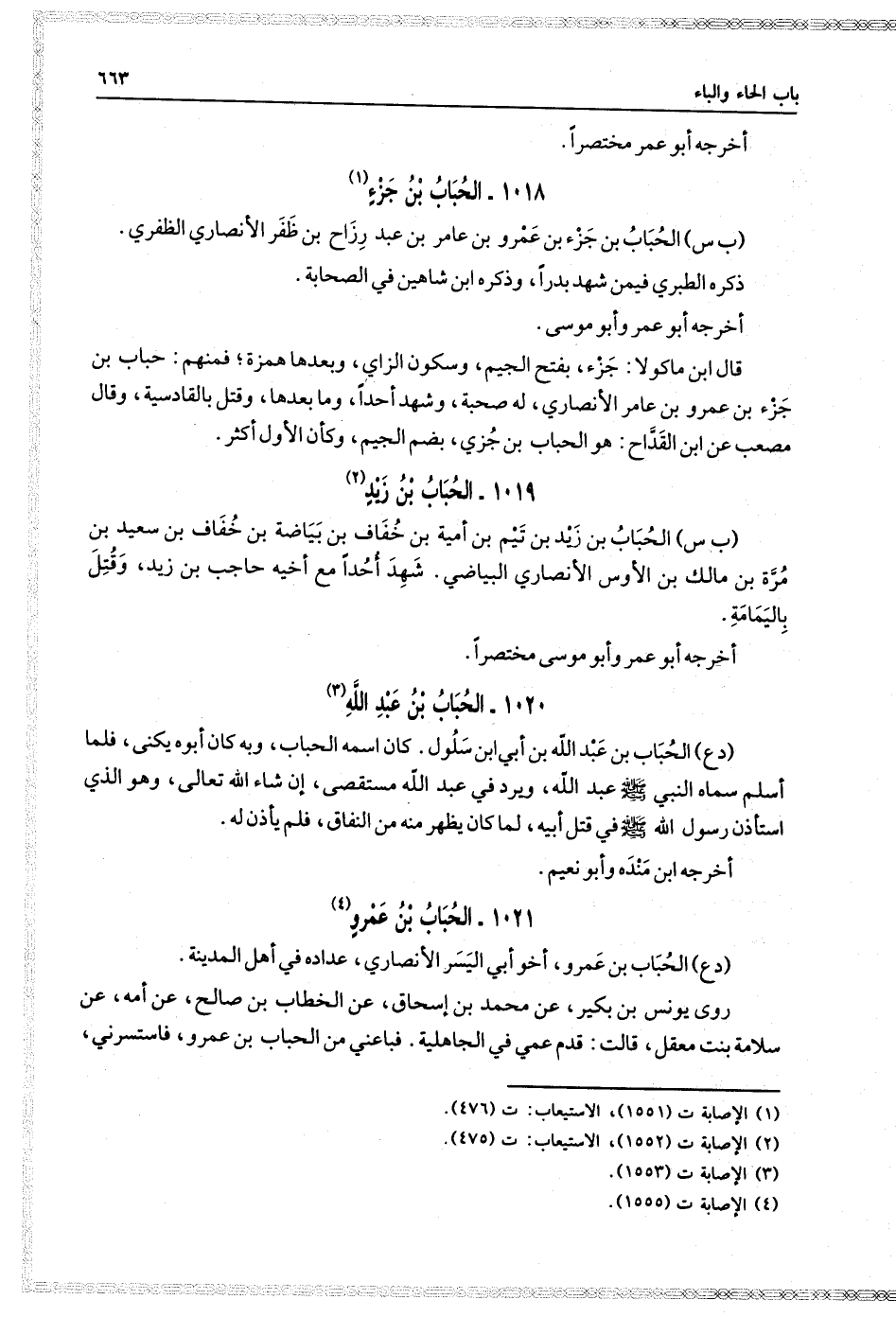 ب س: الحباب بْن جزء بْن عمرو بْن عامر بْن عبد رزاح بْن ظفر الأنصاري الظفري ذكره الطبري فيمن شهد بدرًا، وذكره ابن شاهين في الصحابة.