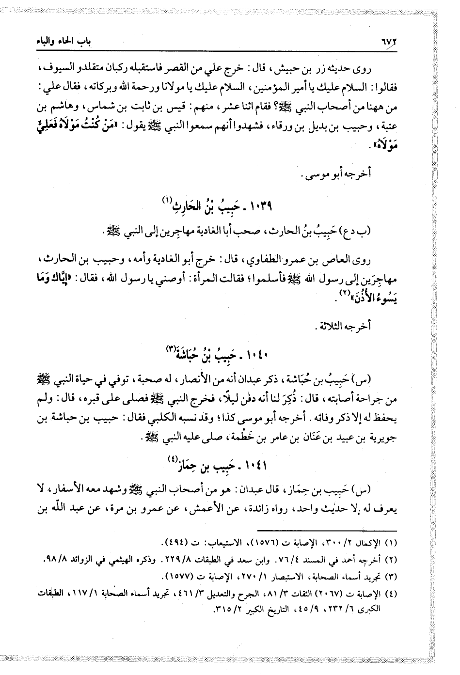 ب د ع: حبيب بْن الحارث صحب أبا الغادية مهاجرين إِلَى النَّبِيّ صَلَّى اللَّهُ عَلَيْهِ وَسَلَّمَ العاص بْن عمرو الطفاوي، قال: خرج أَبُو الغادية، وأمه، وحبيب بْن الحارث مهاجرين إِلَى رَسُول اللَّهِ صَلَّى اللَّهُ عَلَيْهِ وَسَلَّمَ فأسلموا، فقالت المرأة: أوصني يا رَسُول اللَّهِ، فقال: إياك وما يسوء الأذن.