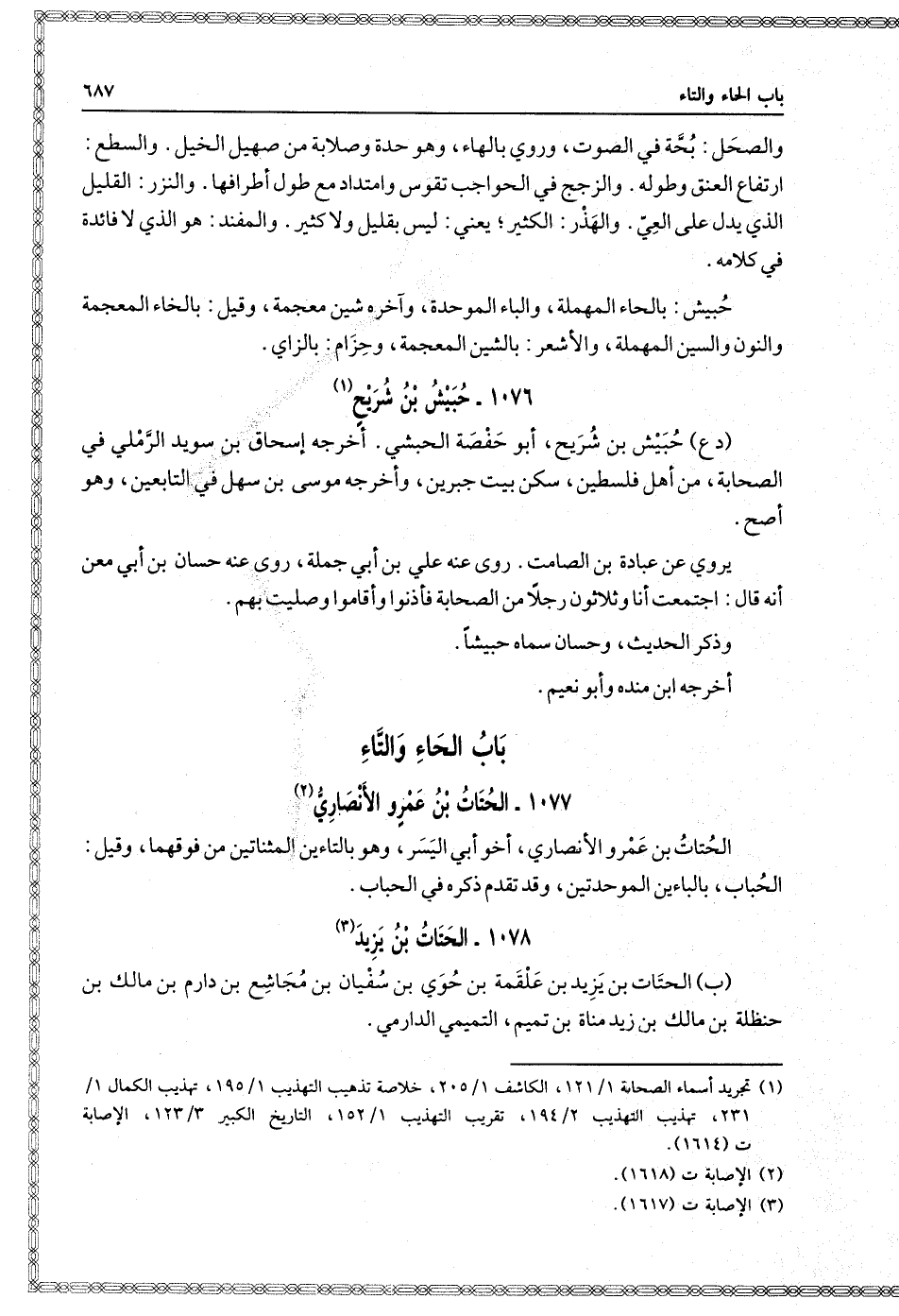 ب: الحتات بْن يَزِيدَ بْن علقمة بْن حوي بْن سفيان بْن مجاشع بْن دارم بْن مالك بْن حنظلة بْن مالك بْن زيد مناة بْن تميم التميمي الدارمي قدم عَلَى النَّبِيّ صَلَّى اللَّهُ عَلَيْهِ وَسَلَّمَ في وفد بني تميم، مع عطارد بْن حاجب، والأقرع بْن حابس، وغيرهما، فأسلموا.