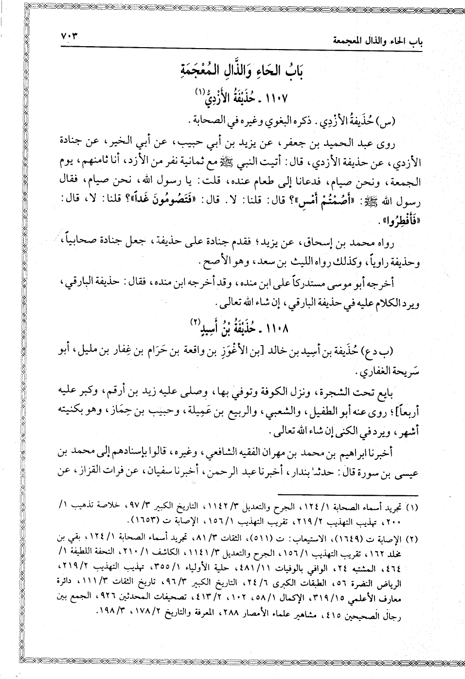 س: حذيفة الأزدي ذكره البغوي، وغيره في الصحابة.