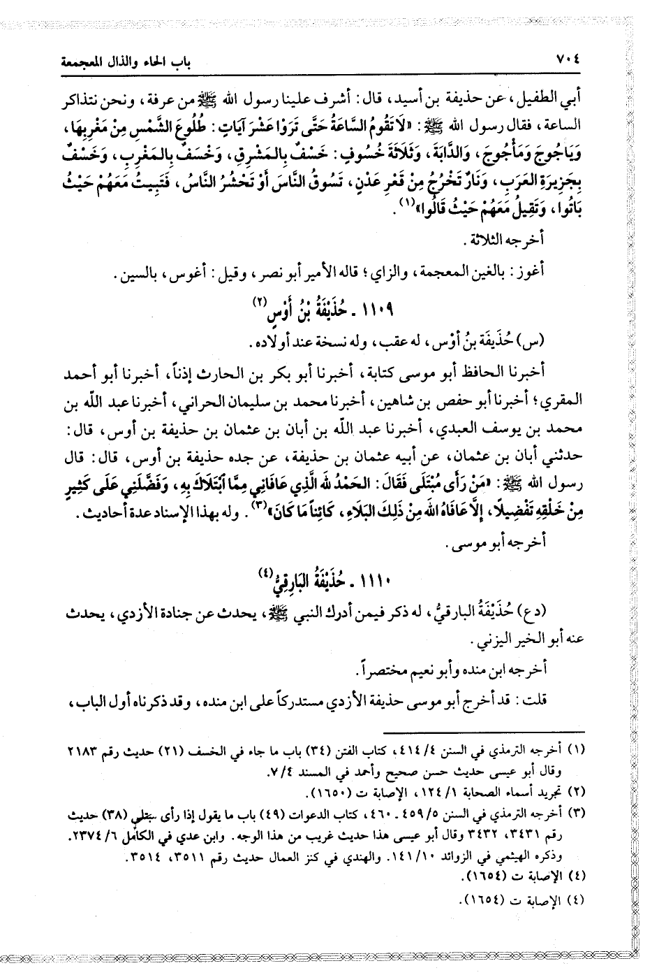 ثم إن أبا موسى قد حكم عَلَى نفسه بأنهما واحد بقوله: ورواه ابن إِسْحَاق، فقدم جنادة عَلَى حذيفة، جعل جنادة صحابيًا، وحذيفة راويًا عنه، وكذا رواه اللَّيْث بْن سعد، وهو الأصح، هذا كلام أَبِي موسى، وهكذا ذكر ابن منده في ترجمة البارقي: حذيفة يروي عن جنادة، وَأَبُو الخير يروي، عن حذيفة البارقي، وهو أيضًا جنادة بْن أَبِي أمية الأزدي الذي تقدم في جنادة، وحديثه أيضًا في صوم يَوْم الجمعة وحده، فظهر به أن هذا جنادة الذي قيل: إنه يروي عن حذيفة، وقيل: إن حذيفة يروي عنه، وهو الصحيح، وجنادة بْن أَبِي أمية الأزدي واحد، وأن حذيفة الأزدي ليس لاستدراكه عَلَى ابن منده وجه، لأنه قد ذكره، وترجمه بالبارقي، والله أعلم.