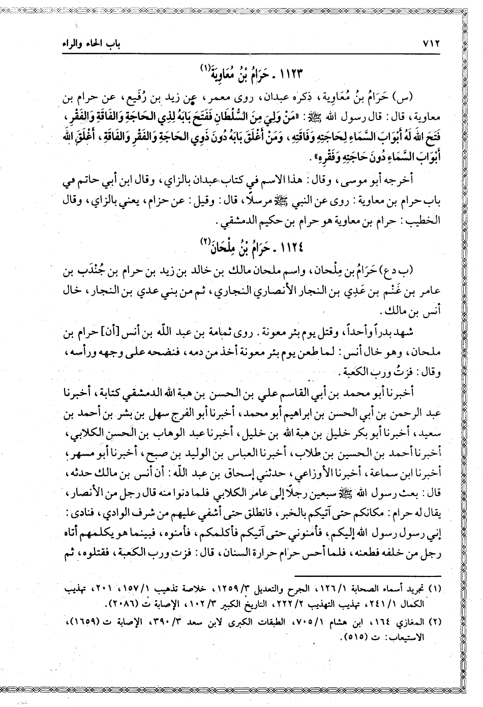 ب د ع: حرام بْن ملحان واسم ملحان مالك بْن خَالِد بْن زيد بْن حرام بْن جندب بْن عامر بْن غنم بْن عدي بْن النجار الأنصاري النجاري ثم من بني عدي بْن النجار خال أنس بْن مالك شهد بدرا، وأحدا، وقتل يوم بئر معونة.