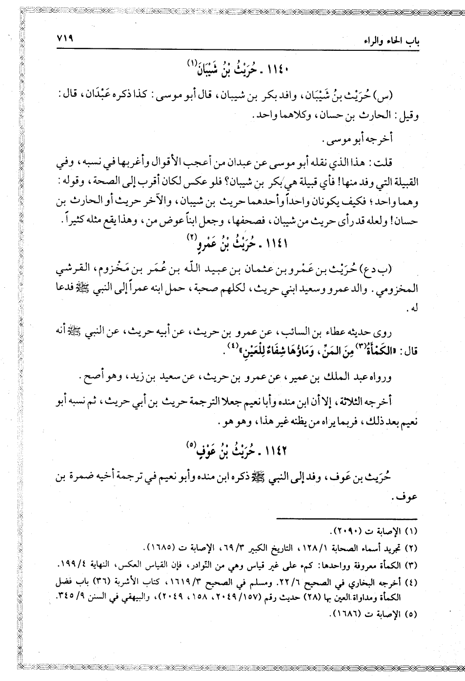 قلت: هذا الذي نقله أَبُو موسى، عن عبدان من أعجب الأقوال وأغربها في نسبه، وفي القبيلة التي وفد منها، فأي قبيلة هي بكر بْن شيبان؟ فلو عكس لكان أقرب إِلَى الصحة، وقوله: وهما واحد، فكيف يكونان واحدً، وأحدهما حريث بْن شيبان، والآخر حريث، أو الحارث بْن حسان، ولعله قد رَأَى حريث بْن شيبان، فصحفها، وجعل ابنا عوض من، وهذا يقع مثله كثيرا.