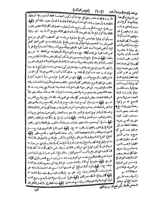 وَالْغَايَةُ لِلرَّدِّ بِالنِّسْبَةِ لِلصَّيْدِ وَلِلتَّعْمِيمِ بِالنِّسْبَةِ لِغَيْرِهِ إذْ الْخِلَافُ إنَّمَا هُوَ فِي الصَّيْدِ؛ لِأَنَّهُ قِيلَ يَجِبُ تَقْوِيرُهُ وَلَا يَطْهُرُ بِالْغُسْلِ وَقِيلَ يُعْفَى عَنْهُ وَلَا يَجِبُ غَسْلُهُ أَصْلًا، وَقِيلَ يَكْفِي غَسْلُهُ مَرَّةً وَاحِدَةً، وَقِيلَ يَكْفِي غَسْلُهُ سَبْعًا مِنْ غَيْرِ تَتْرِيبٍ فَفِيهِ خَمْسَةُ أَقْوَالٍ كَمَا حَكَاهَا م ر هُنَا وَفِي كِتَابِ الصَّيْدِ وَالْخَامِسُ هُوَ مَا ذَكَرَهُ الْمُصَنِّفُ هُنَا مِنْ الطَّهَارَةِ بِالتَّسْبِيعِ مَعَ التَّتْرِيبِ (قَوْلُهُ بِشَيْءٍ مِنْ نَحْوِ كَلْبٍ) نَعَمْ إنْ مَسَّ شَيْئًا دَاخِلَ مَاءٍ كَثِيرٍ لَمْ يَنْجُسْ عَلَى كَلَامِ الْمَجْمُوعِ وَإِنْ اقْتَضَى كَلَامُ التَّحْقِيقِ خِلَافَهُ وَيُتَّجَهُ تَقْيِيدُ الْأَوَّلِ بِمَا إذَا عُدَّ الْمَاءُ حَائِلًا بِخِلَافِ مَا لَوْ قَبَضَ بِيَدِهِ عَلَى نَحْوِ رِجْلِ الْكَلْبِ دَاخِلَ الْمَاءِ قَبْضًا شَدِيدًا بِحَيْثُ لَا يَبْقَى بَيْنَهُ وَبَيْنَهُ مَاءٌ فَلَا يُتَّجَهُ إلَّا التَّنْجِيسُ، وَقَدْ يُتَوَهَّمُ مِنْ عَدَمِ التَّنْجِيسِ بِمُمَاسَّتِهِ دَاخِلَ الْمَاءِ صِحَّةُ صَلَاتِهِ حِينَئِذٍ وَهُوَ خَطَأٌ؛ لِأَنَّ مُلَاقَاةَ النَّجَاسَةِ مُبْطِلٌ وَإِنْ لَمْ يَنْجُسْ كَمَا لَوْ وُقِفَ عَلَى نَجَسٍ جَافٍ قَالَهُ الشَّيْخُ فِي شَرْحِ التَّقْرِيبِ شَوْبَرِيٌّ (قَوْلُهُ غُسِلَ سَبْعًا) أَيْ سَبْعَ مَرَّاتٍ وَلَوْ بِسَبْعِ جِرْيَاتٍ أَوْ تَحْرِيكُهُ سَبْعَ مَرَّاتٍ، وَاَلَّذِي يَظْهَرُ فِي التَّحْرِيكِ أَنَّ الذَّهَابَ يُعَدُّ مَرَّةً وَالْعَوْدُ مَرَّةً أُخْرَى، وَالْفَرْقُ بَيْنَهُ وَبَيْنَ مَا يَأْتِي فِي تَحْرِيكِ الْيَدِ بِالْحَكِّ فِي الصَّلَاةِ أَنَّ الْمَدَارَ ثَمَّ عَلَى الْعُرْفِ فِي التَّحْرِيكِ، وَهُوَ يَعُدُّ الذَّهَابَ وَالْعَوْدَ مَرَّةً وَهُنَا عَلَى جَرْيِ الْمَاءِ، وَالْحَاصِلُ فِي الْعَوْدِ غَيْرُ الْحَاصِلِ فِي الذَّهَابِ.