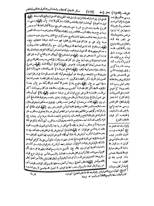 ـــــــــــــــــــــــــــــQقَوْلُهُ فَلَوْ عَلِمَ مَاءً) وَلَوْ بِإِخْبَارِ الْعَدْلِ إذْ الْمُرَادُ بِهِ مَا يَشْمَلُ غَلَبَةَ الظَّنِّ، وَمِثْلُهُ الْفَاسِقُ إنْ وَقَعَ فِي قَلْبِهِ صِدْقُهُ. (قَوْلُهُ فَوْقَ حَدِّ الْغَوْثِ) أَيْ بِاعْتِبَارِ الْغَايَةِ وَإِلَّا فَالْحُدُودُ الثَّلَاثَةُ مُشْتَرَكَةٌ فِي الِابْتِدَاءِ ع ش. (قَوْلُهُ وَيُسَمَّى حَدَّ الْقُرْبِ) وَقَدَّرَهُ بِنِصْفِ فَرْسَخٍ تَقْرِيبًا حَجّ وَقَدْرُ نِصْفِ الْفَرْسَخِ بِسَيْرِ الْأَنْقَالِ الْمُعْتَدِلَةِ أَحَدَ عَشَرَ دَرَجَةً وَرُبْعُ دَرَجَةٍ؛ وَذَلِكَ لِأَنَّ مَسَافَةَ الْقَصْرِ يَوْمٌ وَلَيْلَةٌ وَقَدْرُهُمَا ثَلَثُمِائَةٍ وَسِتُّونَ دَرَجَةً، وَمَسَافَةُ الْقَصْرِ سِتَّةَ عَشَرَ فَرْسَخًا فَإِذَا قُسِمَتْ عَلَيْهَا بِاعْتِبَارِ الدَّرَجِ خَصَّ كُلَّ فَرْسَخٍ اثْنَانِ وَعِشْرُونَ دَرَجَةً وَنِصْفُ دَرَجَةٍ ع ش عَلَى م ر فَإِنْ كَانَ فَوْقَ ذَلِكَ وَلَوْ بِخُطْوَةٍ فَهُوَ حَدُّ الْبُعْدِ شَيْخُنَا عَشْمَاوِيٌّ وح ف. (قَوْلُهُ وَجَبَ طَلَبُهُ) لِأَنَّهُ إذَا سَعَى إلَيْهِ لِشُغْلِهِ الدُّنْيَوِيِّ فَالدِّينِيُّ أَوْلَى حَجّ، وَالْمُرَادُ بِالطَّلَبِ هُنَا غَيْرُ الْمُرَادِ بِهِ عِنْدَ التَّوَهُّمِ فَهُوَ هُنَاكَ الْتِمَاسُ الْمَاءِ وَهُنَا قَصْدُهُ، وَقَوْلُهُ غَيْرَ اخْتِصَاصٍ أَيْ وَكَانَ الْعِلْمُ بِغَيْرِ خَبَرِ الْعَدْلِ وَإِلَّا فَيُشْتَرَطُ أَمْنُ الِاخْتِصَاصِ شَوْبَرِيٌّ (قَوْلُهُ غَيْرَ اخْتِصَاصٍ إلَخْ) أَيْ وَكَانَ غَيْرَ مُحْتَاجٍ إلَيْهِ فَإِنْ كَانَ مُحْتَاجًا إلَيْهِ اُعْتُبِرَ الْأَمْنُ عَلَيْهِ أَيْضًا ع ش بِأَنْ كَانَ كَلْبَ صَيْدٍ وَكَانَتْ مُؤْنَتُهُ مِنْ صَيْدِهِ وَمَحَلُّ الْأَمْنِ عَلَى غَيْرِ الِاخْتِصَاصِ أَيْضًا إذَا كَانَ يَحْصُلُ الْمَاءُ لَا عِوَضَ.