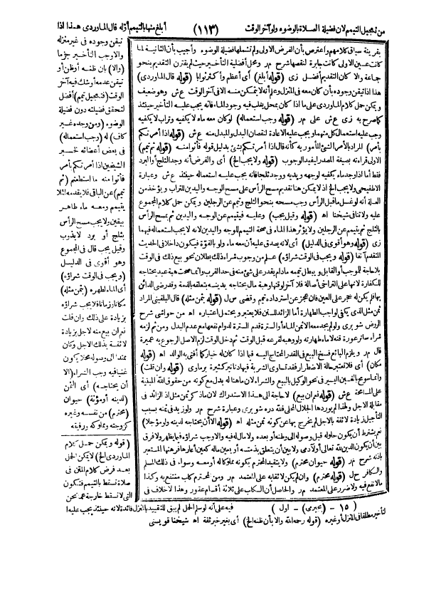 وَاعْتُرِضَ بِأَنَّ الْفَرْضَ الْأُولَى وَلَمْ تَشْمَلْهَا فَضِيلَةُ الْوُضُوءِ. وَأُجِيبَ بِأَنَّ الثَّانِيَةَ لَمَّا كَانَتْ عَيْنَ الْأُولَى كَانَتْ جَابِرَةً لِنَقْصِهَا شَرْحُ م ر، وَمَحَلُّ أَفْضَلِيَّةِ التَّأْخِيرِ حَيْثُ لَمْ يَقْتَرِنْ التَّقْدِيمُ بِنَحْوِ جَمَاعَةٍ وَإِلَّا كَانَ التَّقْدِيمُ أَفْضَلَ ز ي. (قَوْلُهُ أَبْلَغُ) أَيْ أَعْظَمُ وَأَكْثَرُ ثَوَابًا (قَوْلُهُ قَالَ الْمَاوَرْدِيُّ هَذَا إذَا تَيَقَّنَ وُجُودَهُ) بِأَنْ كَانَ مَعَهُ فِي الْمَنْزِلِ وَعَلِمَ أَنَّهُ لَا يَتَمَكَّنُ مِنْهُ إلَّا فِي آخِرِ الْوَقْتِ ع ش وَهُوَ ضَعِيفٌ، وَيُمْكِنُ حَمْلُ كَلَامِ الْمَاوَرْدِيِّ عَلَى مَا إذَا كَانَ بِمَحَلٍّ يَغْلِبُ فِيهِ وُجُودُ الْمَاءِ، فَإِنَّهُ يَجِبُ عَلَيْهِ التَّأْخِيرُ حِينَئِذٍ كَمَا صَرَّحَ بِهِ ز ي ع ش عَلَى م ر