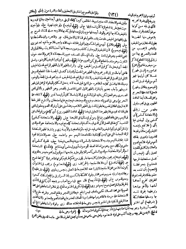 أَوْ غَيْرِهِ، وَقِيلَ: لَا يَحْرُمُ غَيْرُ الْوَطْءِ، وَقَوَّاهُ فِي الْمَجْمُوعِ وَاخْتَارَهُ فِي التَّحْقِيقِ، وَلَفْظُ مُبَاشَرَةِ مِنْ زِيَادَتِي (وَطَلَاقٍ بِشَرْطِهِ) أَيْ: بِشَرْطِ تَحْرِيمِهِ الْآتِي فِي بَابِهِ مِنْ كَوْنِهَا مَوْطُوءَةً تَعْتَدُّ بِأَقْرَاءِ مُطَلَّقَةٍ بِلَا عِوَضٍ مِنْهَا لِتَضَرُّرِهَا بِطُولِ الْمُدَّةِ، فَإِنَّ زَمَنَ الْحَيْضِ وَالنِّفَاسِ لَا يُحْسَبُ مِنْ الْعِدَّةِ، وَالتَّصْرِيحُ بِهَذَا مِنْ زِيَادَتِي