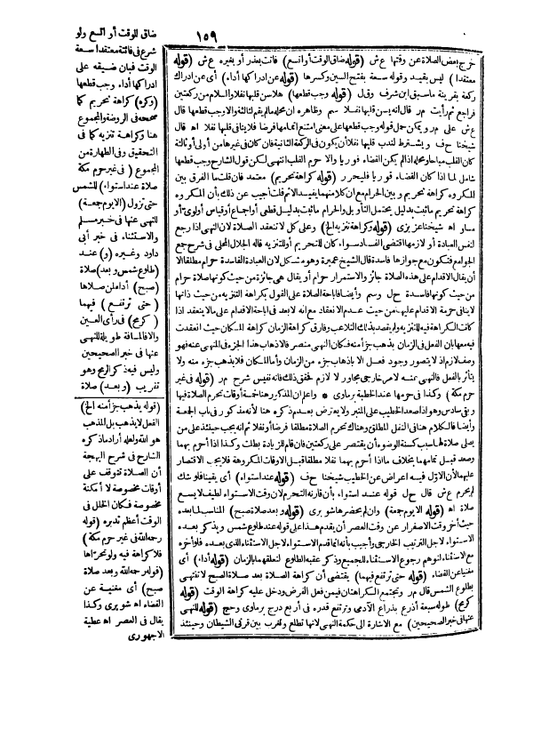 . (قَوْلُهُ كَرَاهَةَ تَحْرِيمٍ) مُعْتَمَدٌ. فَإِنْ قُلْت: مَا الْفَرْقُ بَيْنَ الْمَكْرُوهِ كَرَاهَةَ تَحْرِيمٍ وَبَيْنَ الْحَرَامِ مَعَ أَنَّ كُلًّا مِنْهُمَا يُفِيدُ الْإِثْمَ؟ قُلْت أُجِيبُ عَنْ ذَلِكَ بِأَنَّ الْمَكْرُوهَ كَرَاهَةَ تَحْرِيمٍ مَا ثَبَتَ بِدَلِيلٍ يَحْتَمِلُ التَّأْوِيلَ. وَالْحَرَامُ مَا ثَبَتَ بِدَلِيلٍ قَطْعِيٍّ أَوْ إجْمَاعٍ أَوْ قِيَاسٍ أَوْلَوِيٍّ أَوْ مُسَاوٍ اهـ شَيْخُنَا عَزِيزِيٌّ. (قَوْلُهُ وَكَرَاهَةَ تَنْزِيهٍ إلَخْ) وَعَلَى كُلٍّ لَا تَنْعَقِدُ الصَّلَاةُ لِأَنَّ النَّهْيَ إذَا رَجَعَ لِنَفْسِ الْعِبَادَةِ أَوْ لَازِمِهَا اقْتَضَى الْفَسَادَ، سَوَاءٌ كَانَ لِلتَّحْرِيمِ أَوْ لِلتَّنْزِيهِ قَالَهُ الْجَلَالُ الْمَحَلِّيُّ فِي شَرْحِ جَمْعِ الْجَوَامِعِ، فَتَكُونُ مَعَ جَوَازِهَا فَاسِدَةً قَالَ الشَّيْخُ عَمِيرَةُ: وَهُوَ مُشْكِلٌ لِأَنَّ الْعِبَادَةَ الْفَاسِدَةَ حَرَامٌ مُطْلَقًا، إلَّا أَنْ يُقَالَ الْإِقْدَامُ عَلَى هَذِهِ الصَّلَاةِ جَائِزٌ وَالِاسْتِمْرَارُ حَرَامٌ، أَوْ يُقَالُ هِيَ جَائِزَةٌ مِنْ حَيْثُ كَوْنُهَا صَلَاةً حَرَامٌ مِنْ حَيْثُ كَوْنُهَا فَاسِدَةً ح ل وسم، وَأَيْضًا فَإِبَاحَةُ الصَّلَاةِ عَلَى الْقَوْلِ بِكَرَاهَةِ التَّنْزِيهِ مِنْ حَيْثُ ذَاتُهَا لَا يُنَافِي حُرْمَةَ الْإِقْدَامِ عَلَيْهَا مِنْ حَيْثُ عَدَمُ الِانْعِقَادِ مَعَ أَنَّهُ لَا بُعْدَ فِي إبَاحَةِ الْإِقْدَامِ عَلَى مَا لَا يَنْعَقِدُ إذَا كَانَتْ الْكَرَاهَةُ فِيهِ لِلتَّنْزِيهِ وَلَمْ يَقْصِدْ بِذَلِكَ التَّلَاعُبَ. وَفَارَقَ كَرَاهَةُ الزَّمَانِ كَرَاهَةَ الْمَكَانِ حَيْثُ انْعَقَدَتْ فِيهِ مَعَهَا بِأَنَّ الْفِعْلَ فِي الزَّمَانِ يَذْهَبُ جُزْءٌ مِنْهُ، فَكَانَ النَّهْيُ مُنْصَرِفًا لِإِذْهَابِ هَذَا الْجُزْءِ فِي الْمَنْهِيِّ عَنْهُ فَهُوَ وَصْفٌ لَازِمٌ إذْ لَا يُتَصَوَّرُ وُجُودُ فِعْلٍ إلَّا بِإِذْهَابِ جُزْءٍ مِنْ الزَّمَانِ، وَأَمَّا الْمَكَانُ فَلَا يَذْهَبُ جُزْءٌ مِنْهُ وَلَا يَتَأَثَّرُ بِالْفِعْلِ، فَالنَّهْيُ عَنْهُ لِأَمْرٍ خَارِجِيٍّ مُجَاوِرٍ لَا لَازِمٍ فَحَقِّقْ ذَلِكَ فَإِنَّهُ نَفِيسٌ شَرْحُ م ر. (قَوْلُهُ فِي غَيْرِ حُرْمَةِ مَكَّةَ) وَكَذَا فِي حَرَمِهَا عِنْدَ الْخُطْبَةِ بِرْمَاوِيٌّ.