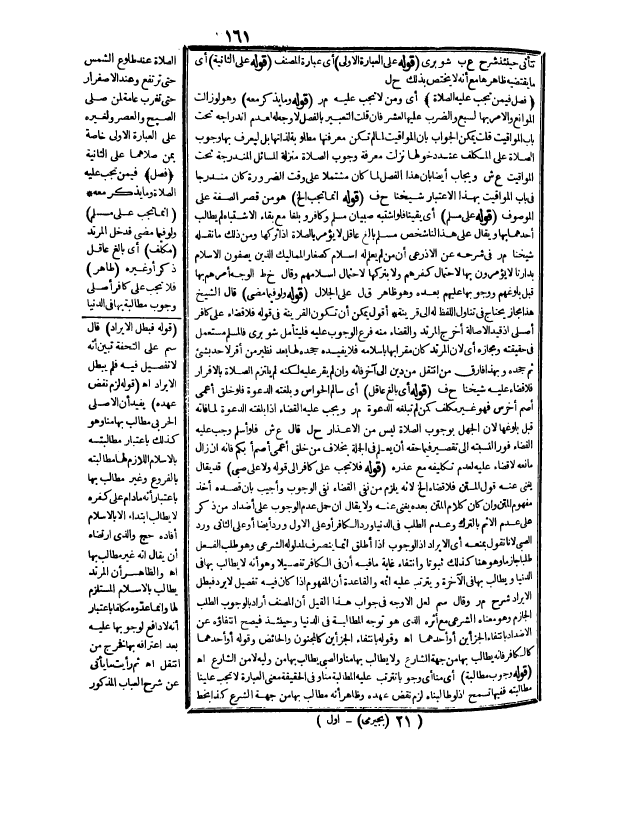 الصَّلَاةِ عِنْدَ طُلُوعِ الشَّمْسِ حَتَّى تَرْتَفِعَ، وَعِنْدَ الِاصْفِرَارِ حَتَّى تَغْرُبَ عَامَّةٌ لِمَنْ صَلَّى الصُّبْحَ وَالْعَصْرَ، وَلِغَيْرِهِ عَلَى الْعِبَارَةِ الْأُولَى خَاصَّةً بِمَنْ صَلَّاهُمَا عَلَى الثَّانِيَةِ.