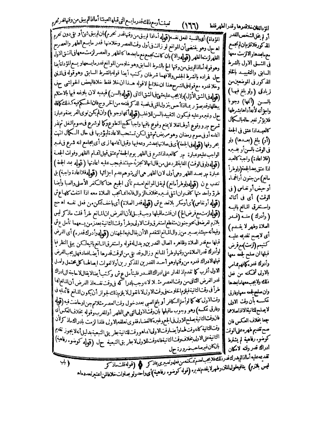 (قَوْلُهُ: وَإِلَّا) بِأَنْ كَانَتْ تُجْمَعُ مَعَ مَا بَعْدَهَا كَالظُّهْرِ وَالْعَصْرِ لَزِمَتْ مَعَهَا فِي الشِّقِّ الْأَوَّلِ، وَهُوَ قَوْلُهُ: أَمَّا إذَا لَمْ يَبْقَ مِنْ وَقْتِهَا إلَخْ بِالشَّرْطِ السَّابِقِ، وَهُوَ خُلُوُّهُ مِنْ الْمَوَانِعِ قَدْرَ مَا يَسَعُهَا وَيَسَعُ الْمُؤَدَّاةَ أَيْضًا ح ل فَمُرَادُهُ بِالشَّرْطِ الْجِنْسُ وَإِلَّا فَهُمَا شَرْطَانِ وَكَتَبَ أَيْضًا قَوْلَهُ: بِالشَّرْطِ السَّابِقِ، وَهُوَ قَوْلُهُ: فِي الْمَتْنِ وَخَلَا قَدْرُهُ مَعَ قَوْلِهِ فِي الشَّرْحِ: هَذَا إنْ خَلَا إلَخْ لَا قَوْلِهِ: هَذَا إنْ خَلَا فَقَطْ خِلَافًا لِبَعْضِ الْحَوَاشِي ح ف. (قَوْلُهُ: فِي الشِّقِّ الْأَوَّلِ) وَلَا يَجِبُ عَلَيْهِ شَيْءٌ فِي الشِّقِّ الثَّانِي. (قَوْلُهُ: بِالسِّنِّ) قَيَّدَ بِهِ لِأَنَّ بُلُوغَهُ فِيهَا بِالِاحْتِلَامِ يُبْطِلُهَا، وَقَدْ يُصَوَّرُ بِمَا إذَا أَحَسَّ بِنُزُولِ الْمَنِيِّ فِي قَصَبِ الذَّكَرِ فَمَنَعَهُ مِنْ الْخُرُوجِ فَإِنَّ الْحُكْمَ فِيهِ كَذَلِكَ، كَمَا قَالَهُ ح ل وَغَيْرُهُ: وَعَلَيْهِ فَيَكُونُ التَّقْيِيدُ بِالسِّنِّ لِلْأَغْلَبِ.