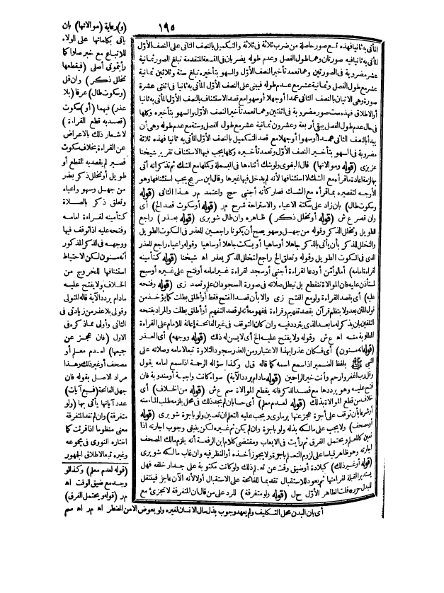 ـــــــــــــــــــــــــــــQالْمَأْتِيِّ بِهِ ثَانِيًا فَهَذِهِ تِسْعُ صُوَرٍ حَاصِلَةٌ مِنْ ضَرْبِ ثَلَاثَةٍ فِي ثَلَاثَةٍ وَالتَّكْمِيلُ بِالنِّصْفِ الثَّانِي عَلَى النِّصْفِ الْأَوَّلِ الْمَأْتِيِّ بِهِ ثَانِيًا فِيهِ صُورَتَانِ وَهُمَا طُولُ الْفَصْلِ وَعَدَمُ طُولِهِ يُضْرَبَانِ فِي التِّسْعَةِ الْمُتَقَدِّمَةِ تَبْلُغُ الصُّوَرُ ثَمَانِيَةَ عَشْرَ مَضْرُوبَةً فِي الصُّورَتَيْنِ وَهُمَا تَعَمَّدُ تَأْخِيرَ النِّصْفِ الْأَوَّلِ وَالسَّهْوُ بِتَأْخِيرِهِ تَبْلُغُ سِتَّةً وَثَلَاثِينَ ثَمَانِيَةَ عَشْرَ مَعَ طُولِ الْفَصْلِ وَثَمَانِيَةَ عَشْرَ مَعَ عَدَمِ طُولِهِ فَيُبْنَى عَلَى النِّصْفِ الْأَوَّلِ الْمَأْتِيِّ بِهِ ثَانِيًا فِي اثْنَتَيْ عَشْرَةَ صُورَةً وَهِيَ الْإِتْيَانُ بِالنِّصْفِ الثَّانِي عَمْدًا أَوْ جَهْلًا أَوْ سَهْوًا مَعَ قَصْدِ الِاسْتِئْنَافِ بِالنِّصْفِ الْأَوَّلِ الْمَأْتِيِّ بِهِ ثَانِيًا أَوْ الْإِطْلَاقِ فَهَذِهِ سِتُّ صُوَرٍ مَضْرُوبَةٍ فِي اثْنَتَيْنِ وَهُمَا تَعَمُّدُ تَأْخِيرِ النِّصْفِ الْأَوَّلِ وَالسَّهْوُ بِتَأْخِيرِهِ وَكُلُّهَا فِي حَالِ عَدَمِ طُولِ الْفَصْلِ يَبْقَى أَرْبَعَةٌ وَعِشْرُونَ ثَمَانِيَةَ عَشْرَ مَعَ طُولِ الْفَصْلِ وَسِتَّةٌ مَعَ عَدَمِ طُولِهِ، وَهِيَ أَنْ يَبْدَأَ بِالنِّصْفِ الثَّانِي عَمْدًا أَوْ سَهْوًا أَوْ جَهْلًا مَعَ قَصْدِ التَّكْمِيلِ بِالنِّصْفِ الْأَوَّلِ الْمَأْتِيِّ بِهِ ثَانِيًا فَهَذِهِ ثَلَاثَةٌ مَضْرُوبَةٌ فِي السَّهْوِ بِتَأْخِيرِ النِّصْفِ الْأَوَّلِ وَتَعَمُّدِ تَأْخِيرِهِ، وَكُلُّهَا يَجِبُ فِيهَا الِاسْتِئْنَافُ تَقْرِيرُ شَيْخِنَا عَزِيزِيٌّ.