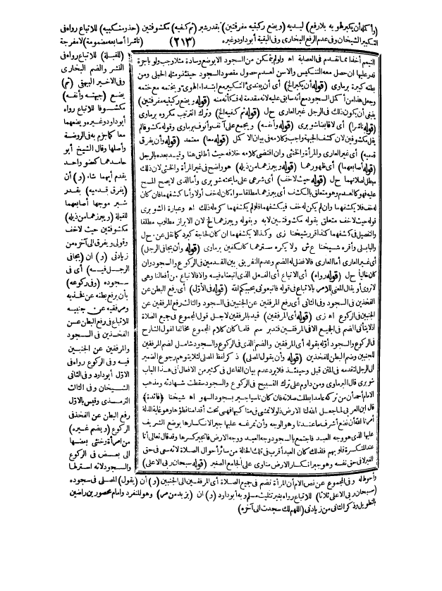 (قَوْلُهُ: وَيَبْرُزُهُمَا مِنْ ذَيْلِهِ) هُوَ وَاضِحٌ فِي غَيْرِ الْمَرْأَةِ وَالْخُنْثَى لِأَنَّ ذَلِكَ مُبْطِلٌ لِصَلَاتِهِمَا ح ل. (قَوْلُهُ: حَيْثُ لَا خُفَّ) أَيْ: شَرْعِيٌّ عَلَى مَا بَحَثَهُ شَوْبَرِيٌّ وَأَمَّا الَّذِي لَا يَصِحُّ الْمَسْحُ عَلَيْهِ فَهُوَ كَالْعَدَمِ وَهُوَ مُتَعَلِّقٌ بِالْكَشْفِ أَيْ: يَبْرُزُهُمَا مُطْلَقًا سَوَاءٌ كَانَ لَهُ خُفٌّ أَوْ لَا وَأَمَّا كَشْفُهُمَا فَإِنْ كَانَ لَهُ خُفٌّ فَلَا يَكْشِفُهُمَا وَإِنْ لَمْ يَكُنْ لَهُ خُفٌّ فَيَكْشِفُهُمَا فَلَوْ لَمْ يَكْشِفُهُمَا كُرِهَ لَهُ ذَلِكَ اهـ وَعِبَارَةُ الشَّوْبَرِيِّ قَوْلُهُ: حَيْثُ لَا خُفَّ مُتَعَلِّقٌ بِقَوْلِهِ مَكْشُوفَتَيْنِ لَا بِهِ وَبِقَوْلِهِ: وَيَبْرُزُهُمَا إلَخْ لِأَنَّ الْإِبْرَازَ مَطْلُوبٌ مُطْلَقًا وَالتَّفْصِيلُ فِي كَشْفِهِمَا كَذَا قَرَّرَ شَيْخُنَا ز ي وَكَذَا لَا يَكْشِفُهُمَا إنْ كَانَ لِحَاجَةٍ كَبَرْدٍ كَمَا نُقِلَ عَنْ ح ل وَالْبَابِلِيِّ وَأَقَرَّهُ شَيْخُنَا ع ش وَلَا يُكْرَهُ سَتْرُهُمَا كَالْكَفَّيْنِ بِرْمَاوِيٌّ. (قَوْلُهُ: وَأَنْ يُجَافِيَ الرَّجُلُ) أَيْ: غَيْرُ الْعَارِي أَمَّا الْعَارِي فَالْأَفْضَلُ لَهُ الضَّمُّ وَعَدَمُ التَّفْرِيقِ بَيْنَ الْقَدَمَيْنِ فِي الرُّكُوعِ وَالسُّجُودِ وَإِنْ كَانَ خَالِيًا ح ل. (قَوْلُهُ: رَوَاهُ) أَيْ: الِاتِّبَاعَ أَيْ: الْفِعْلَ الَّذِي اتَّبَعْنَاهُ فِيهِ وَإِلَّا فَالِاتِّبَاعُ مِنْ أَفْعَالِنَا وَهِيَ لَا تُرْوَى أَوْ يُقَالُ الْمَعْنَى لِلْأَمْرِ بِالِاتِّبَاعِ فِي قَوْلِهِ: {فَاتَّبِعُونِي يُحْبِبْكُمُ اللَّهُ} [آل عمران: 31] . (قَوْلُهُ: فِي الْأَوَّلِ) أَيْ: رَفْعُ الْبَطْنِ عَنْ الْفَخِذَيْنِ فِي السُّجُودِ وَفِي الثَّانِي أَيْ: رَفْعُ الْمِرْفَقَيْنِ عَنْ الْجَنْبَيْنِ فِي السُّجُودِ وَالثَّالِثُ رَفْعُ الْمِرْفَقَيْنِ عَنْ الْجَنْبَيْنِ فِي الرُّكُوعِ. اهـ. ز ي. (قَوْلُهُ: أَيْ: الْمِرْفَقَيْنِ) قَيَّدَ بِالْمِرْفَقَيْنِ لِأَجْلِ قَوْلِ الْمَجْمُوعِ فِي جَمِيعِ الصَّلَاةِ إذْ لَا يَتَأَتَّى الضَّمُّ فِي الْجَمِيعِ إلَّا فِي الْمِرْفَقَيْنِ فَتَدَبَّرْ سم فَلَمَّا كَانَ كَلَامُ الْمَجْمُوعِ مُخَالِفًا لِقَوْلِ الشَّارِحِ فِي الرُّكُوعِ وَالسُّجُودِ أَوَّلَهُ بِقَوْلِهِ أَيْ: الْمِرْفَقَيْنِ وَالضَّمُّ الَّذِي فِي الرُّكُوعِ وَالسُّجُودِ شَامِلٌ لِضَمِّ الْمِرْفَقَيْنِ لِلْجَنْبَيْنِ وَضَمِّ الْبَطْنِ لِلْفَخِذَيْنِ.