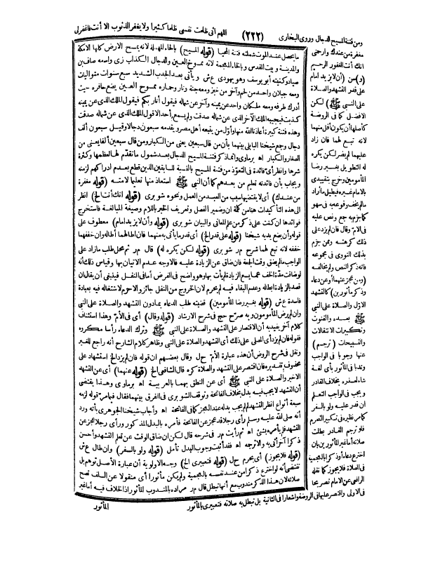 وَمِنْ فِتْنَةِ الْمَسِيحِ الدَّجَّالِ» وَرَوَى الْبُخَارِيُّ «اللَّهُمَّ إنِّي ظَلَمْتُ نَفْسِي ظُلْمًا كَثِيرًا وَلَا يَغْفِرُ الذُّنُوبَ إلَّا أَنْتَ فَاغْفِرْ لِي مَغْفِرَةً مِنْ عِنْدِكَ وَارْحَمْنِي إنَّكَ أَنْتَ الْغَفُورُ الرَّحِيمُ» .