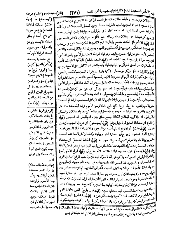 ـــــــــــــــــــــــــــــQفِي غَيْرِ الم تَنْزِيلُ فِي صُبْحِ يَوْمِ الْجُمُعَةِ بَطَلَتْ صَلَاتُهُ عَلَى الْمُعْتَمَدِ إنْ كَانَ عَالِمًا بِالتَّحْرِيمِ؛ لِأَنَّ الصَّلَاةَ مَنْهِيٌّ عَنْ زِيَادَةِ سَجْدَةٍ فِيهَا إلَّا السُّجُودَ لِسَبَبٍ، فَالْقِرَاءَةُ بِقَصْدِ السُّجُودِ كَتَعَاطِي السَّبَبِ بِاخْتِيَارِهِ فِي أَوْقَاتِ الْكَرَاهَةِ لِيَفْعَلَ الصَّلَاةَ فِيهَا، اهـ. مُلَخَّصًا قَالَ ز ي: وَلَوْ قَرَأَ فِي صُبْحِ الْجُمُعَةِ بِغَيْرِ الم تَنْزِيلُ بِقَصْدِ السُّجُودِ أَفْتَى شَيْخُنَا م ر بِبُطْلَانِ صَلَاتِهِ، وَخَالَفَهُ حَجّ، فَأَفْتَى بِعَدَمِ الْبُطْلَانِ؛ لِأَنَّهُ مَحَلُّ السُّجُودِ فِي الْجُمْلَةِ. (قَوْلُهُ: إلَّا مَأْمُومًا) اسْتِثْنَاءٌ مُنْقَطِعٌ وَلَوْ قَالَ الشَّارِحُ: لَا لِغَيْرِهَا لَكَانَ مُتَّصِلًا شَوْبَرِيٌّ وَيُصَدَّقُ الْغَيْرُ بِسَجْدَةِ الْغَيْرِ، فَتَأَمَّلْ. وَهُوَ مَبْنِيٌّ عَلَى أَنَّهُ مُسْتَثْنًى مِنْ الْمَفْهُومِ، وَهُوَ قَوْلُ الشَّارِحِ: لَا لِقِرَاءَةِ غَيْرِهِ، وَالظَّاهِرُ أَنَّهُ مُتَّصِلٌ؛ لِأَنَّهُ مُسْتَثْنًى مِنْ قَوْلِهِ: مُصَلٍّ مَعَ قَيْدِهِ وَهُوَ قَوْلُهُ: لِقِرَاءَتِهِ؛ لِأَنَّهُ شَامِلٌ لِلْمَأْمُومِ وَالْمَعْنَى إلَّا مَأْمُومًا فَلَا يَسْجُدُ لِقِرَاءَتِهِ، بَلْ يَسْجُدُ لِسَجْدَةِ إمَامِهِ.