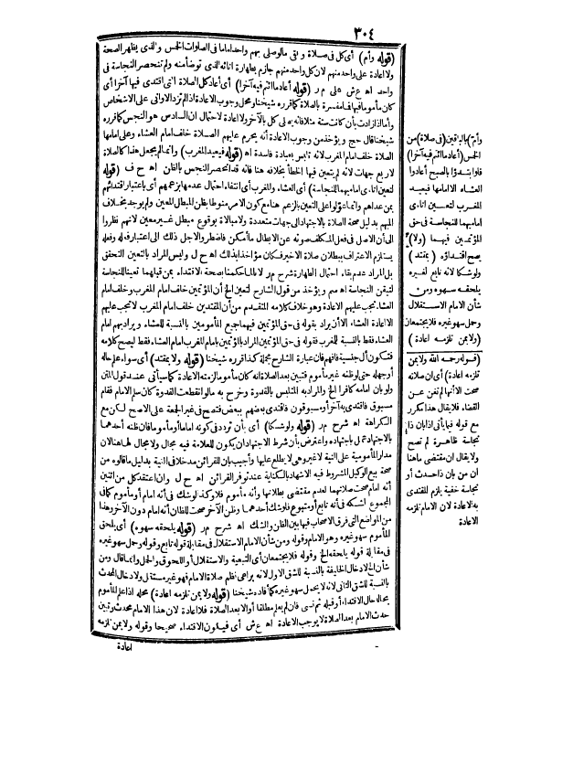 ـــــــــــــــــــــــــــــQقَوْلُهُ: وَأَمَّ) أَيْ كُلٌّ فِي صَلَاةٍ وَبَقِيَ مَا لَوْ صَلَّى بِهِمْ وَاحِدٌ إمَامًا فِي الصَّلَوَاتِ الْخَمْسِ وَاَلَّذِي يَظْهَر الصِّحَّةُ وَلَا إعَادَةَ عَلَى وَاحِدٍ مِنْهُمْ لِأَنَّ كُلَّ وَاحِدِ مِنْهُمْ جَازِمٌ بِطَهَارَةِ إنَائِهِ الَّذِي تَوَضَّأَ مِنْهُ وَلَمْ تَنْحَصِرْ النَّجَاسَةُ فِي وَاحِدٍ اهـ. ع ش عَلَى م ر (قَوْلُهُ: أَعَادَ مَا ائْتَمَّ فِيهِ آخِرًا) أَيْ أَعَادَ كُلٌّ الصَّلَاةَ الَّتِي اقْتَدَى فِيهَا آخِرًا أَيْ كَانَ مَأْمُومًا فِيهَا فَمَا مُفَسَّرَةٌ بِالصَّلَاةِ كَمَا قَرَّرَهُ شَيْخُنَا وَمَحَلُّ وُجُوبِ الْإِعَادَةِ إذَا لَمْ تَزِدْ الْأَوَانِي عَلَى الْأَشْخَاصِ وَأَمَّا إذَا زَادَتْ بِأَنْ كَانَتْ سِتَّةً مَثَلًا فَإِنَّهُ يُصَلِّي كُلٌّ بِالْآخَرِ وَلَا إعَادَةَ لِاحْتِمَالِ أَنَّ السَّادِسَ هُوَ النَّجِسُ كَمَا قَرَّرَهُ شَيْخُنَا قَالَ حَجّ: وَيُؤْخَذُ مِنْ وُجُوبِ الْإِعَادَةِ أَنَّهُ يَحْرُمُ عَلَيْهِمْ الصَّلَاةُ خَلْفَ إمَامِ الْعِشَاءِ وَعَلَى إمَامِهَا الصَّلَاةُ خَلْفَ إمَامِ الْمَغْرِبِ لِأَنَّهُ تَلَبُّسٌ بِعِبَادَةٍ فَاسِدَةٍ اهـ. (قَوْلُهُ: فَيُعِيدُ الْمَغْرِبَ) وَإِنَّمَا لَمْ يَجْعَلْ هَذَا كَالصَّلَاةِ لِأَرْبَعِ جِهَاتٍ؛ لِأَنَّهُ لَمْ يَتَعَيَّنْ فِيهَا الْخَطَأُ بِخِلَافِهِ هُنَا فَإِنَّهُ قَدْ انْحَصَرَ النَّجِسُ بِالظَّنِّ اهـ. ح ف (قَوْلُهُ: لِتَعَيُّنِ إنَاءَيْ إمَامَيْهِمَا لِلنَّجَاسَةِ) أَيْ الْعِشَاءِ، وَالْمَغْرِبِ أَيْ انْتِفَاءِ احْتِمَالِ عَدَمِهَا بِزَعْمِهِمْ أَيْ بِاعْتِبَارِ اقْتِدَائِهِمْ بِمَنْ عَدَاهُمْ وَإِنَّمَا عَوَّلُوا عَلَى التَّعَيُّنِ بِالزَّعْمِ هُنَا مَعَ كَوْنِ الْأَمْرِ مَنُوطًا بِظَنِّ الْمُبْطِلِ الْمُعَيَّنِ وَلَمْ يُوجَدْ بِخِلَافِ الْمُبْهَمِ بِدَلِيلِ صِحَّةِ الصَّلَاةِ بِالِاجْتِهَادِ إلَى جِهَاتٍ مُتَعَدِّدَةٍ وَلَا مُبَالَاةَ بِوُقُوعِ مُبْطِلٍ غَيْرِ مُعَيَّنٍ؛ لِأَنَّهُمْ نَظَرُوا إلَى أَنَّ الْأَصْلَ فِي فِعْلِ الْمُكَلَّفِ صَوْنُهُ عَنْ الْإِبْطَالِ مَا أَمْكَنَ فَاضْطُرُّوا لِأَجْلِ ذَلِكَ إلَى اعْتِبَارِ فِعْلِهِ وَفِعْلُهُ يَسْتَلْزِمُ الِاعْتِرَافَ بِبُطْلَانِ صَلَاةِ الْأَخِيرِ فَكَانَ مُؤَاخَذًا بِذَلِكَ اهـ. ح ل وَلَيْسَ الْمُرَادُ بِالتَّعَيُّنِ التَّحَقُّقَ بَلْ الْمُرَادُ عَدَمُ بَقَاءِ احْتِمَالِ الطَّهَارَةِ شَرْحُ م ر لِأَنَّا لَمَّا حَكَمْنَا بِصِحَّةِ الِاقْتِدَاءِ بِمَنْ قَبْلَهَا تَعَيَّنَا لِلنَّجَاسَةِ لِتَيَقُّنِ النَّجَاسَةِ اهـ. سم وَيُؤْخَذُ مِنْ قَوْلِ الشَّارِحِ لِتَعَيُّنِ إلَخْ أَنَّ الْمُؤْتَمِّينَ خَلْفَ إمَامِ الْمَغْرِبِ وَخَلْفَ إمَامِ الْعِشَاءِ تَجِبُ عَلَيْهِمْ الْإِعَادَةُ وَهُوَ خِلَافُ كَلَامِهِ الْمُتَقَدِّمِ مِنْ أَنَّ الْمُقْتَدِينَ خَلْفَ إمَامِ الْمَغْرِبِ لَا تَجِبُ عَلَيْهِمْ إلَّا إعَادَةُ الْعِشَاءِ إلَّا أَنْ يُرَادَ بِقَوْلِهِ فِي حَقِّ الْمُؤْتَمِّينَ فِيهِمَا جَمِيعُ الْمَأْمُومِينَ بِالنِّسْبَةِ لِلْعِشَاءِ وَيُرَادُ بِهِمْ إمَامُ الْعِشَاءِ فَقَطْ بِالنِّسْبَةِ لِلْمَغْرِبِ فَقَوْلُهُ: فِي حَقِّ الْمُؤْتَمِّينَ الْمُرَادُ بِالْمُؤْتَمِّينَ بِإِمَامِ الْمَغْرِبِ إمَامُ الْعِشَاءِ فَقَطْ لِيَصِحَّ كَلَامُهُ فَتَكُونَ أَلْ جِنْسِيَّةً فَافْهَمْ فَإِنَّ عِبَارَةَ الشَّارِحِ مُجْمَلَةٌ كَذَا قَرَّرَهُ شَيْخُنَا