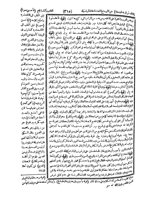 وَالْأَصْلُ عَطَفَ بِالْوَاوِ فَقَالَ فَإِنْ اسْتَوَيَا فَنَظَافَةُ الثَّوْبِ، وَالْبَدَنِ وَحُسْنُ الصَّوْتِ وَطِيبُ الصَّنْعَةِ وَنَحْوِهَا أَيْ كَحُسْنِ وَجْهٍ وَسَمْتٍ وَاَلَّذِي فِي التَّحْقِيقِ فَإِنْ اسْتَوَيَا قُدِّمَ بِحُسْنِ الذِّكْرِ ثُمَّ بِنَظَافَةِ الثَّوْبِ، وَالْبَدَنِ وَطِيبِ الصَّنْعَةِ وَحُسْنِ الصَّوْتِ ثُمَّ الْوَجْهِ وَفِي الْمَجْمُوعِ الْمُخْتَارُ تَقْدِيمُ أَحْسَنِهِمْ ذِكْرًا ثُمَّ صَوْتًا ثُمَّ هَيْئَةً فَإِنْ تَسَاوَيَا وَتَشَاحَّا أُقْرِعَ بَيْنَهُمَا